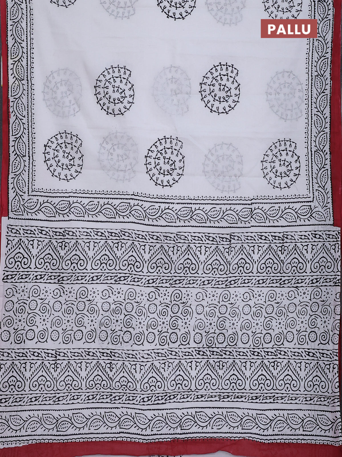 Jaipur cotton saree off white and marron with warli butta prints and printed border