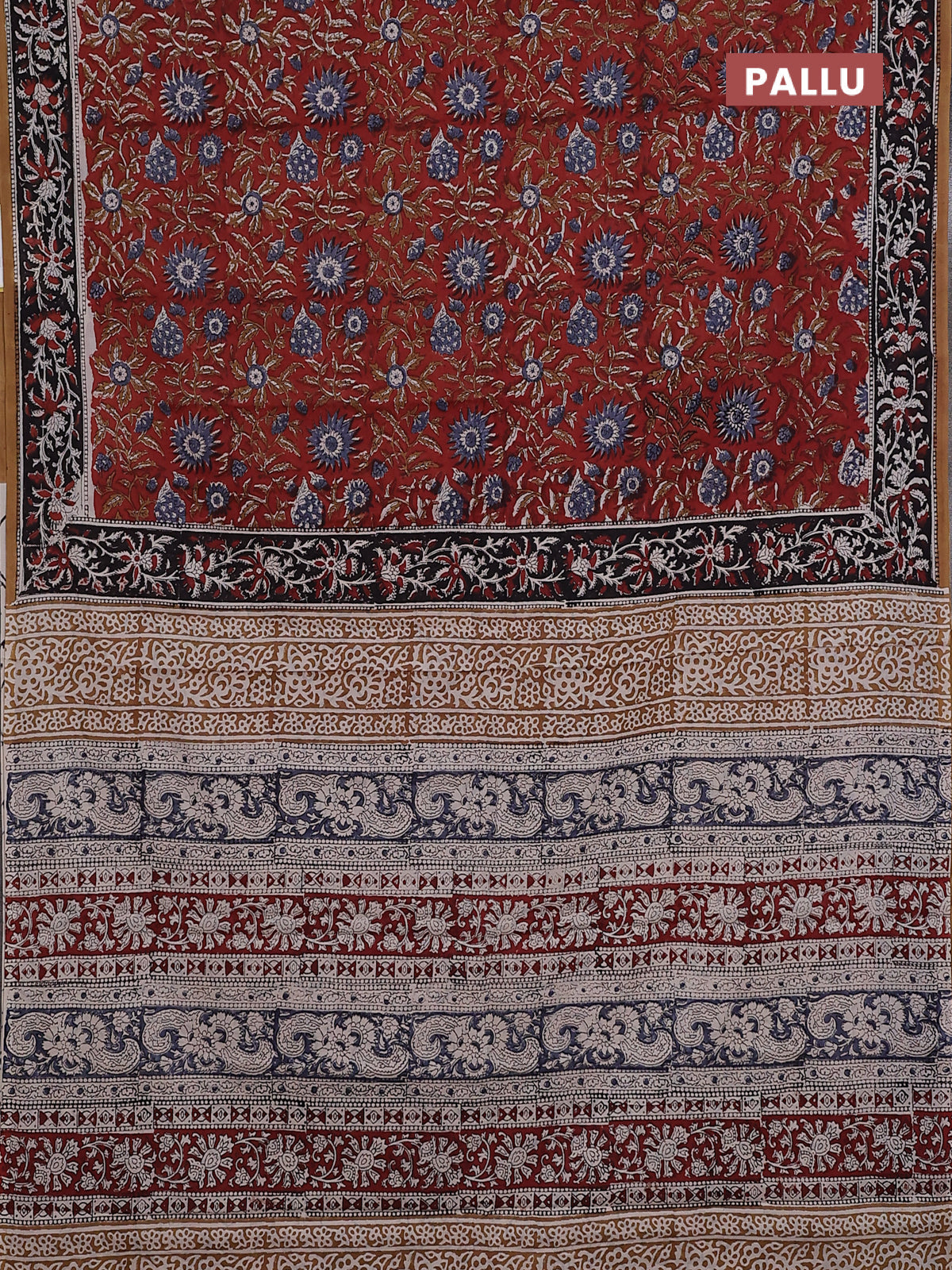 Jaipur cotton saree rustic maroon and black with allover kalamkari prints and printed border