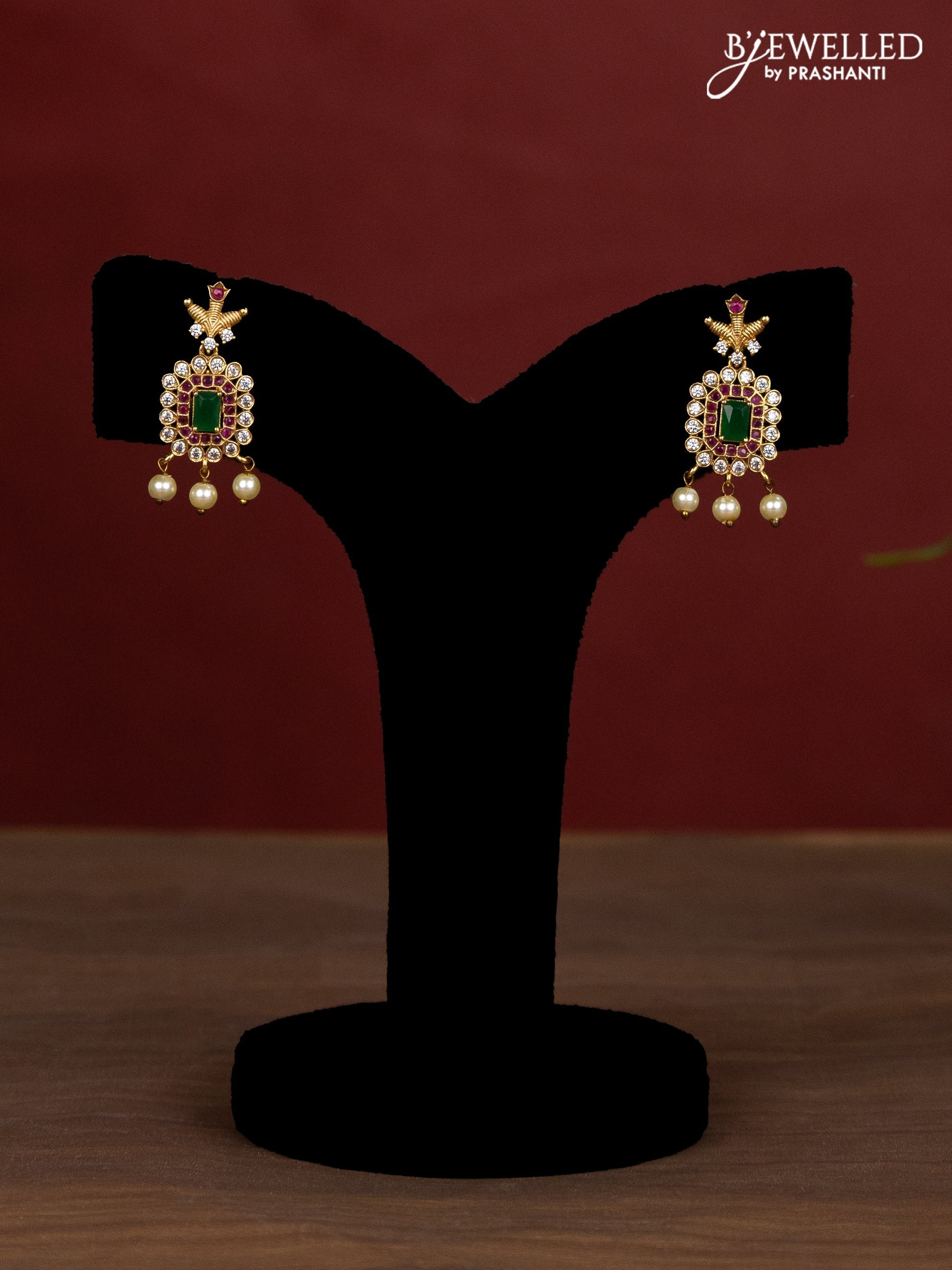 Jaipur crystal beaded multilayer yellow necklace with ruby and cz stones
