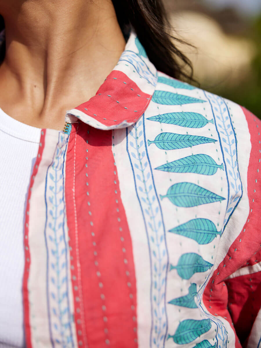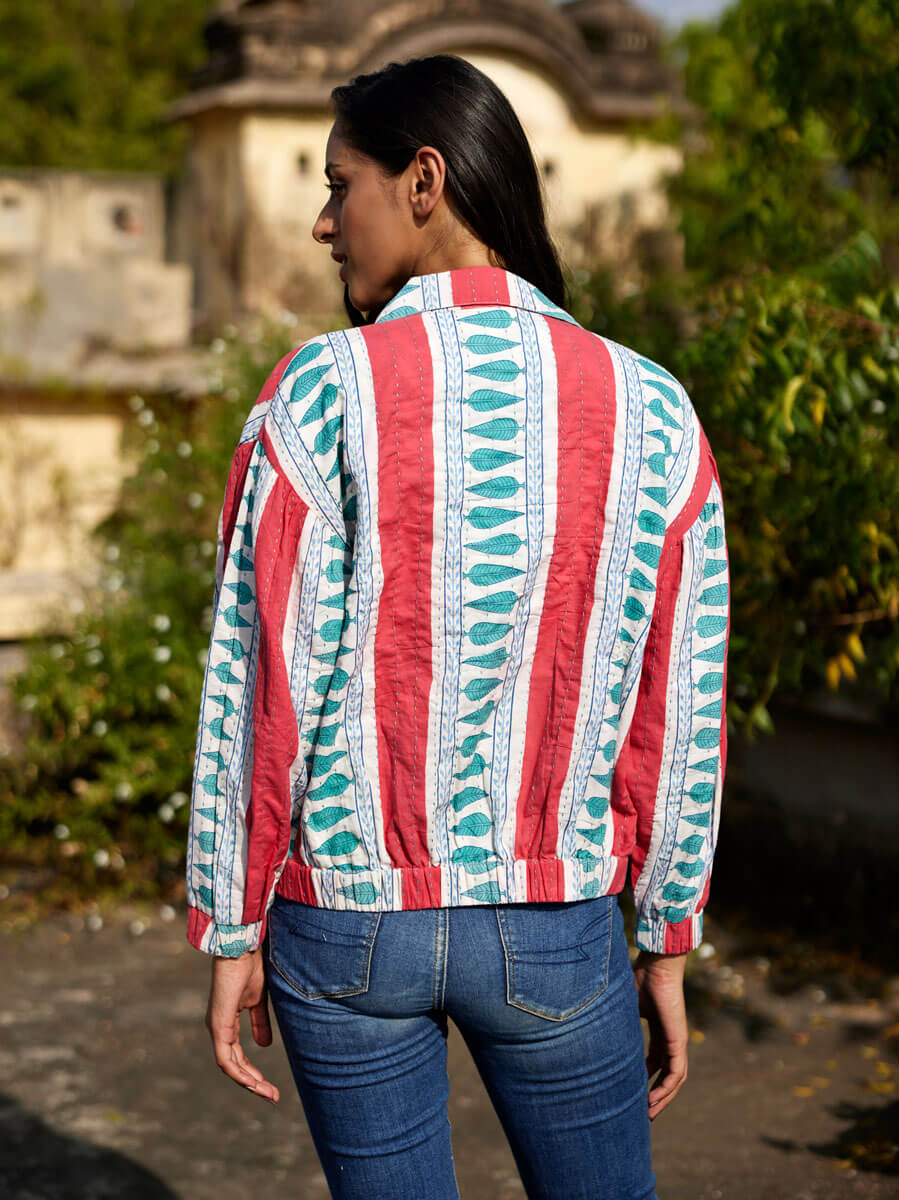 Jane Kantha Embroidered Block Printed Bomber Jacket