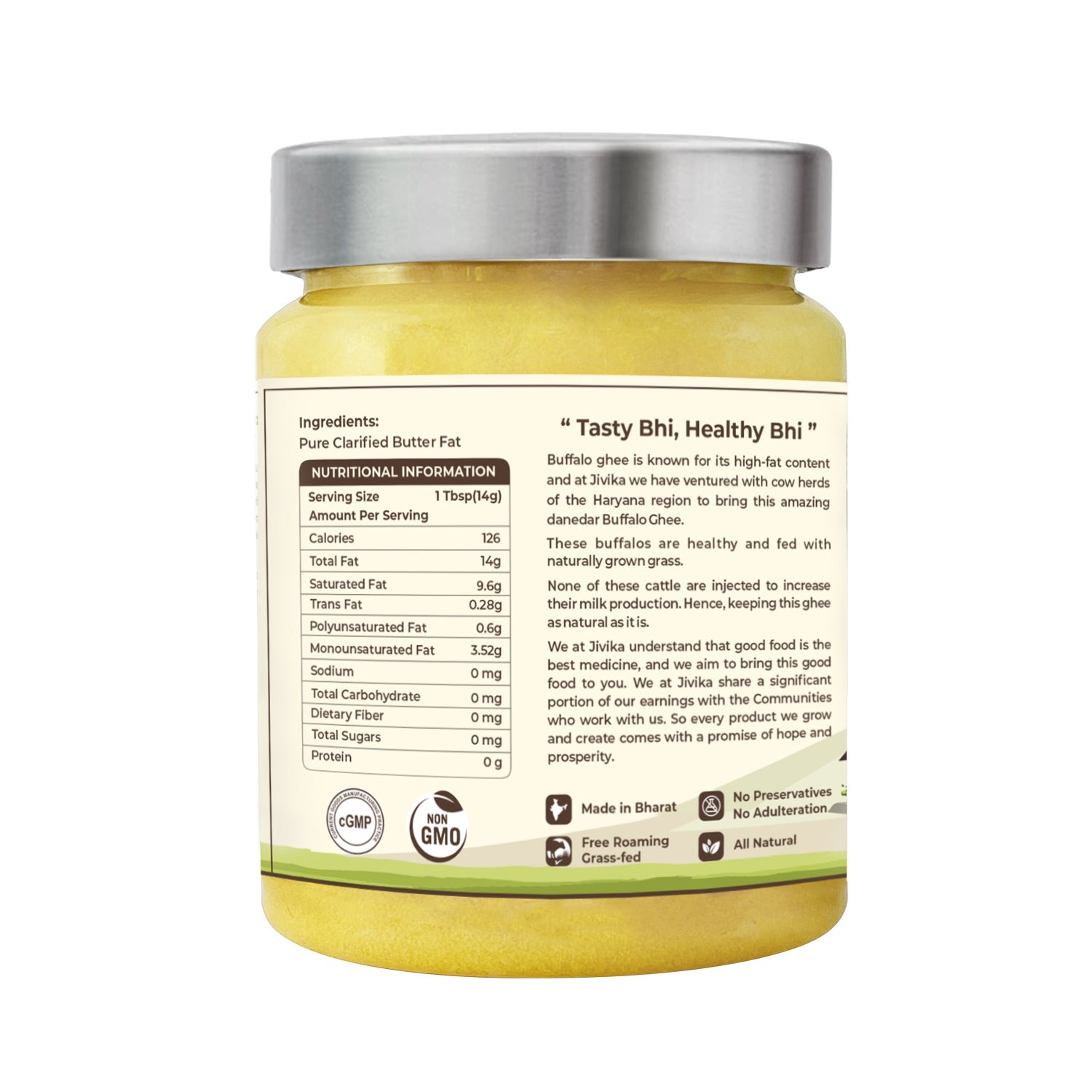Buffalo ghee is known for its high-fat content and at Jivika we have ventured with cow herds of the Haryana region to bring this amazing Danedar Buffalo Ghee.