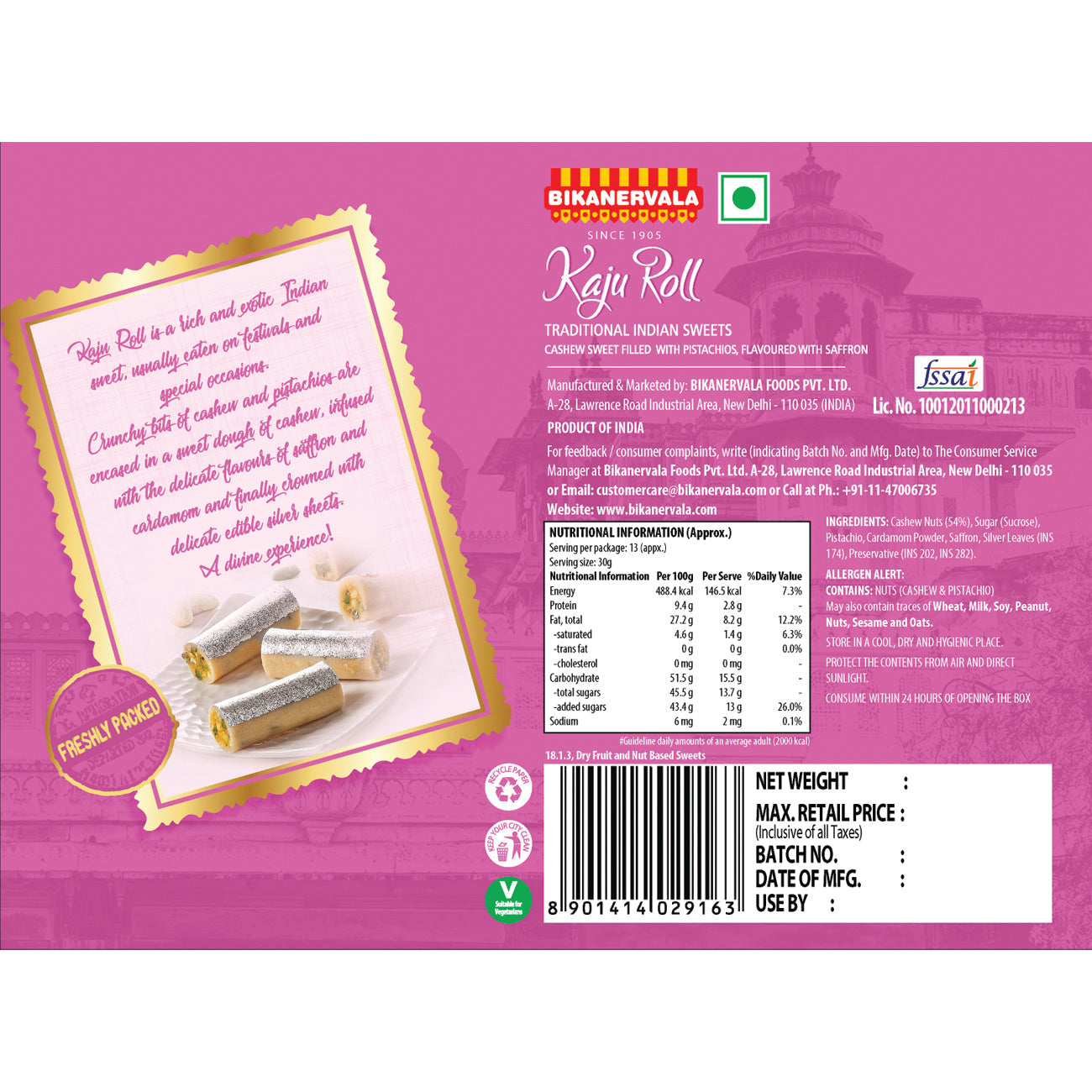 A cylindrical shaped Indian mithai prepared from powdered cashews and pistachios.