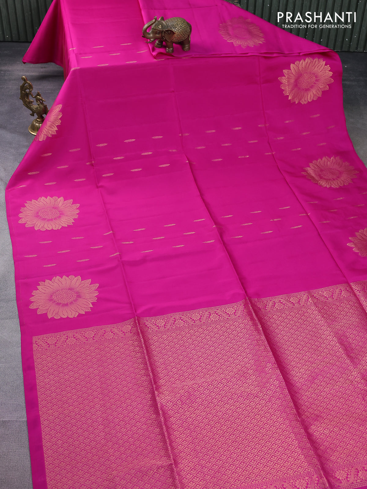 Kanchipuram soft silk saree pink with allover zari woven buttas and zari woven floral butta border