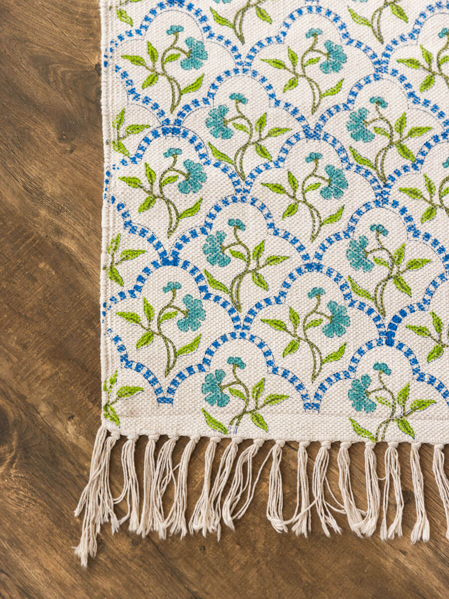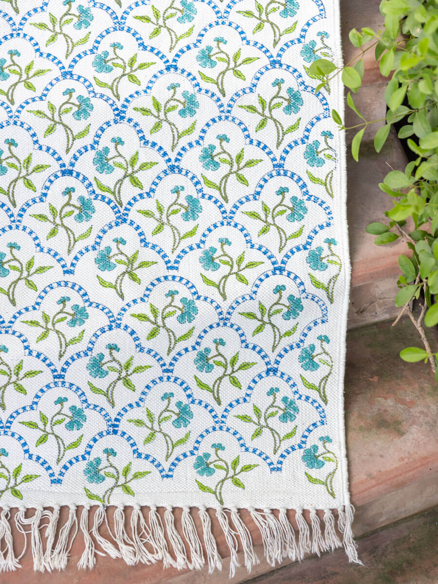 Kolam Block Printed Cotton Dhurrie Rug