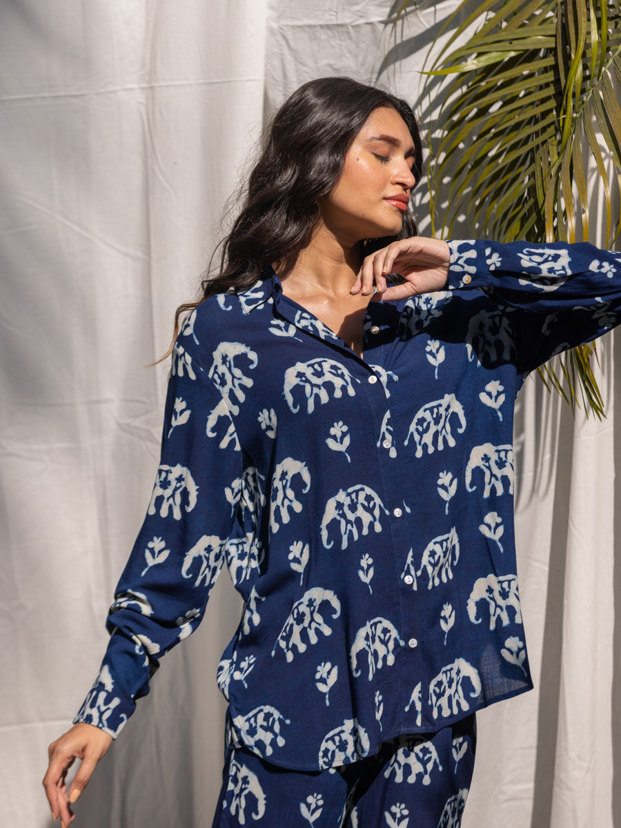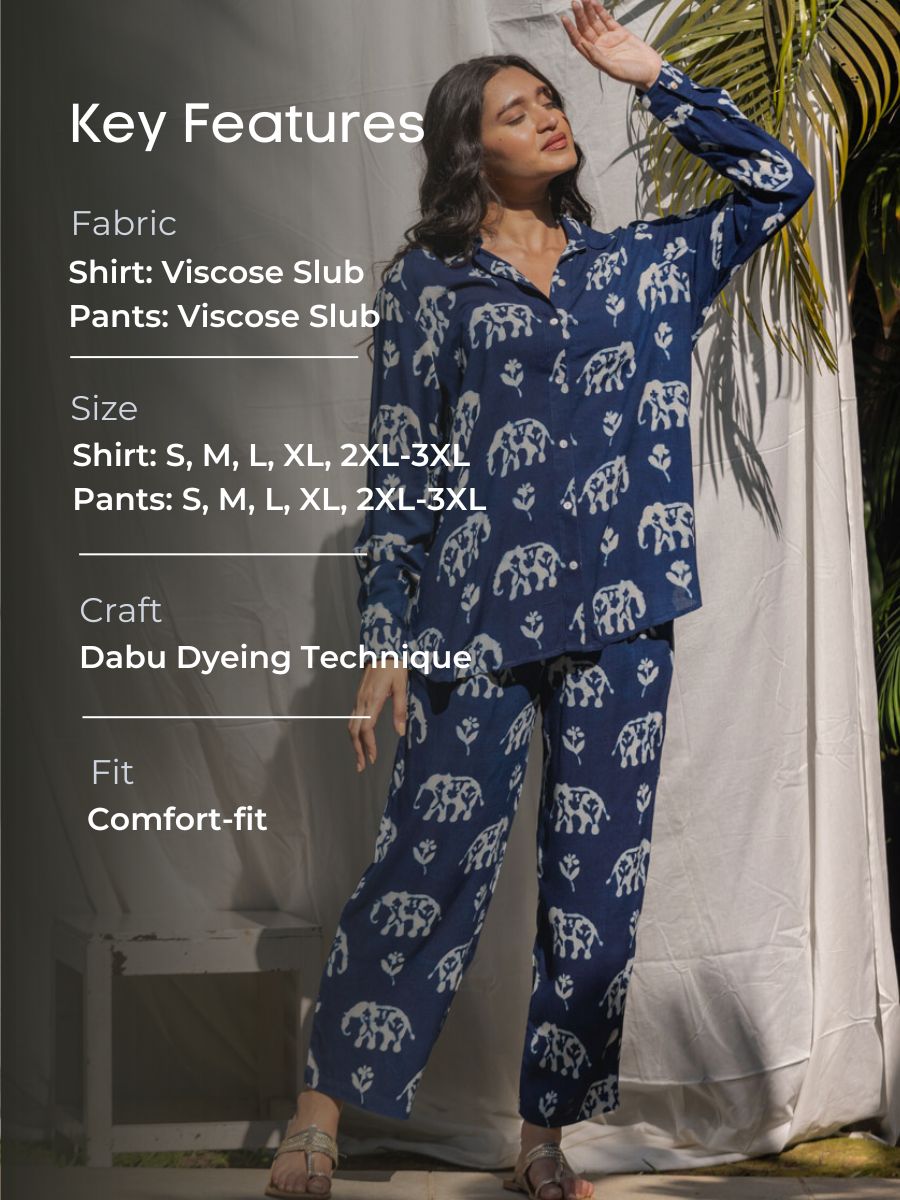 - Shirt: Handcrafted using dabu dyeing technique on viscose slub | Comfort-fit