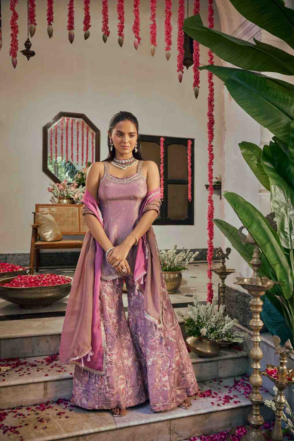 Elevate your wardrobe with the Lavender Tissue Hand Embroidery Palazoo Set, a perfect blend of delicate craftsmanship and refined style. Crafted from lightweight tissue fabric, this set features intricate hand embroidery that adds timeless elegance and subtle texture. Its graceful silhouette ensures comfort while making a sophisticated statement suitable for both formal gatherings and tasteful casual outings. Experience the harmony of traditional artistry and modern design in this exquisite ensemble.