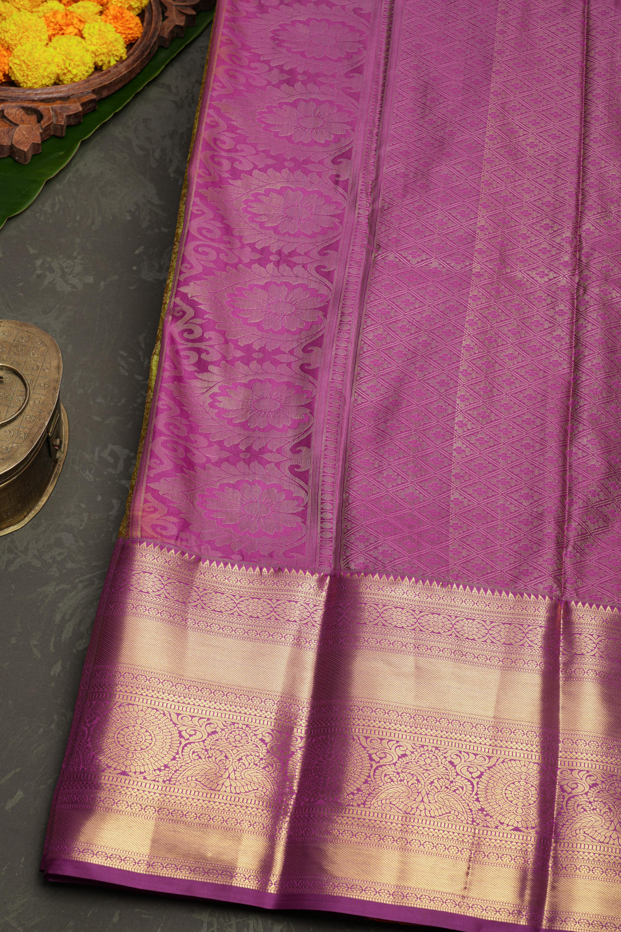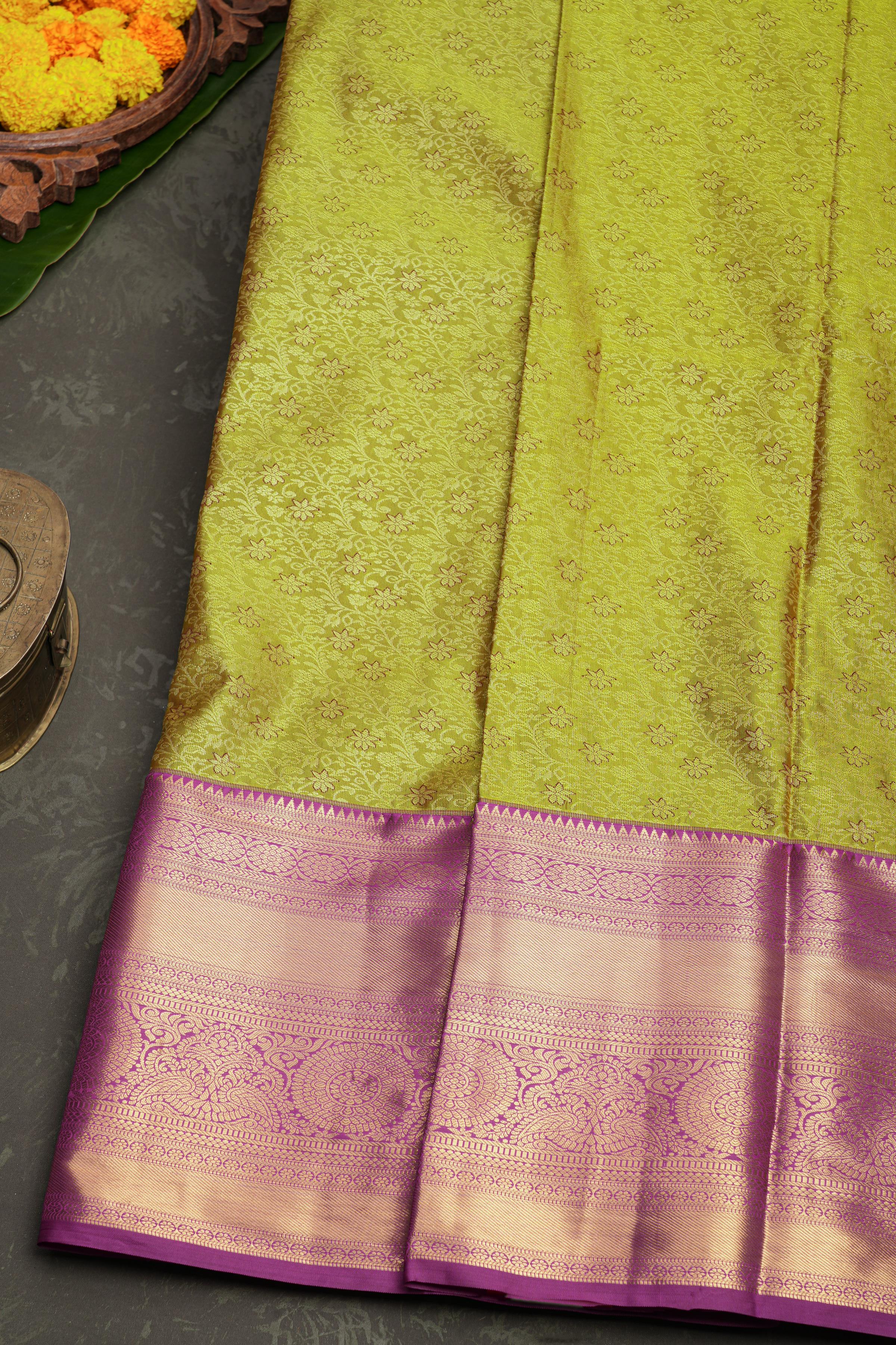 LIGHT GREEN and PURPLE FLORAL JAAL SILK BLEND Saree with SEMI PATTU