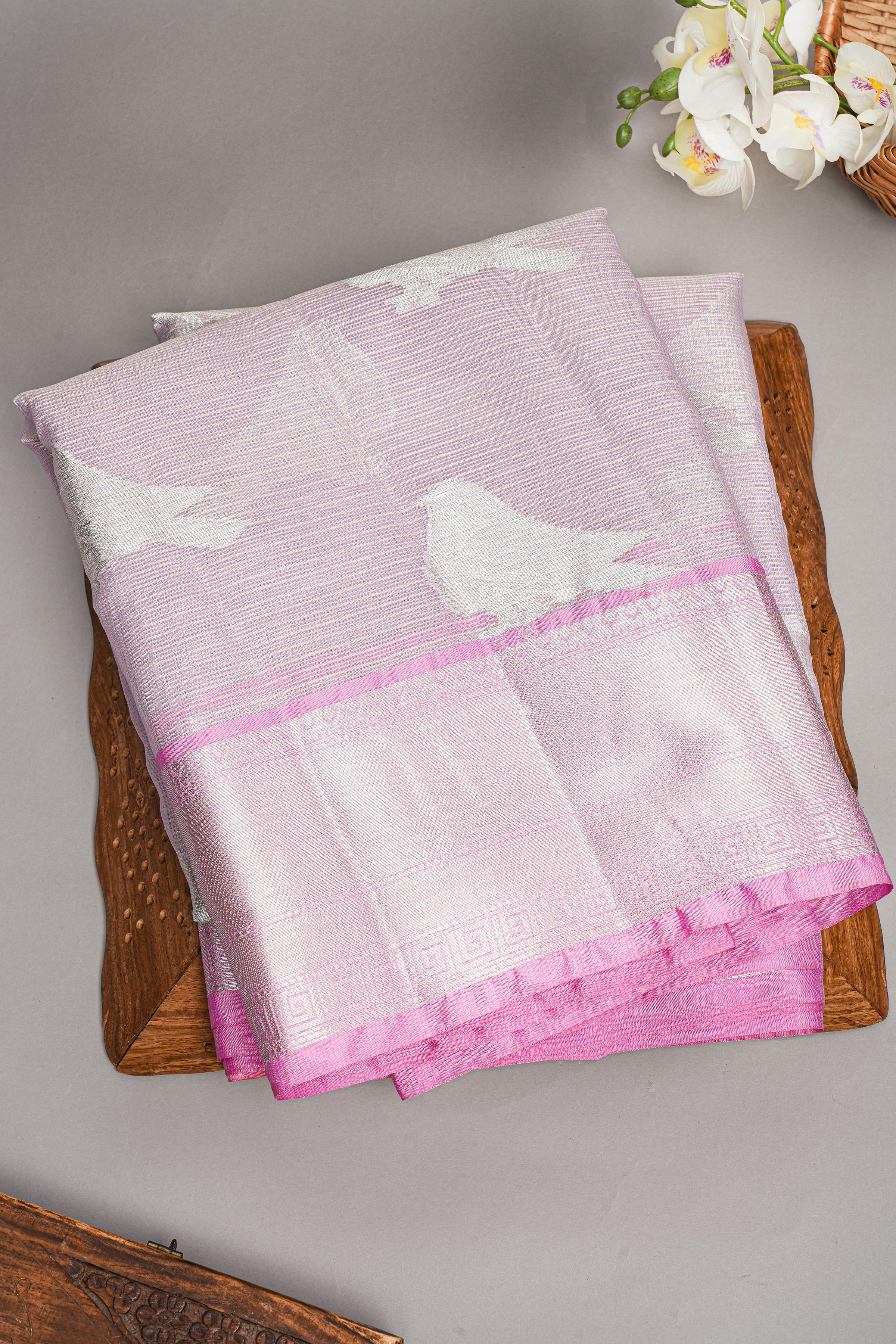 LIGHT LAVENDER and LIGHT PINK BIRDS FIGURE WEAVING KOTA Saree with FANCY
