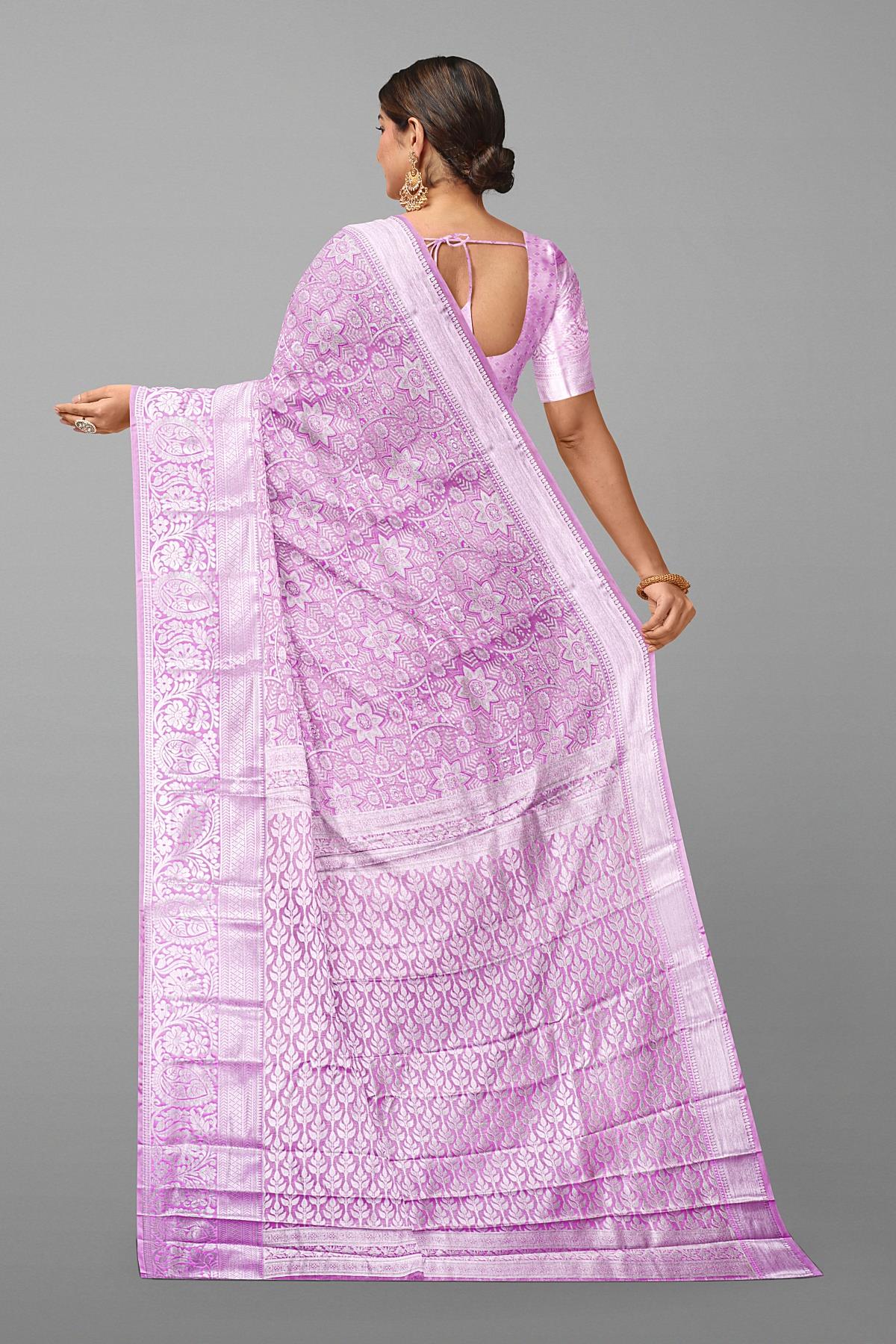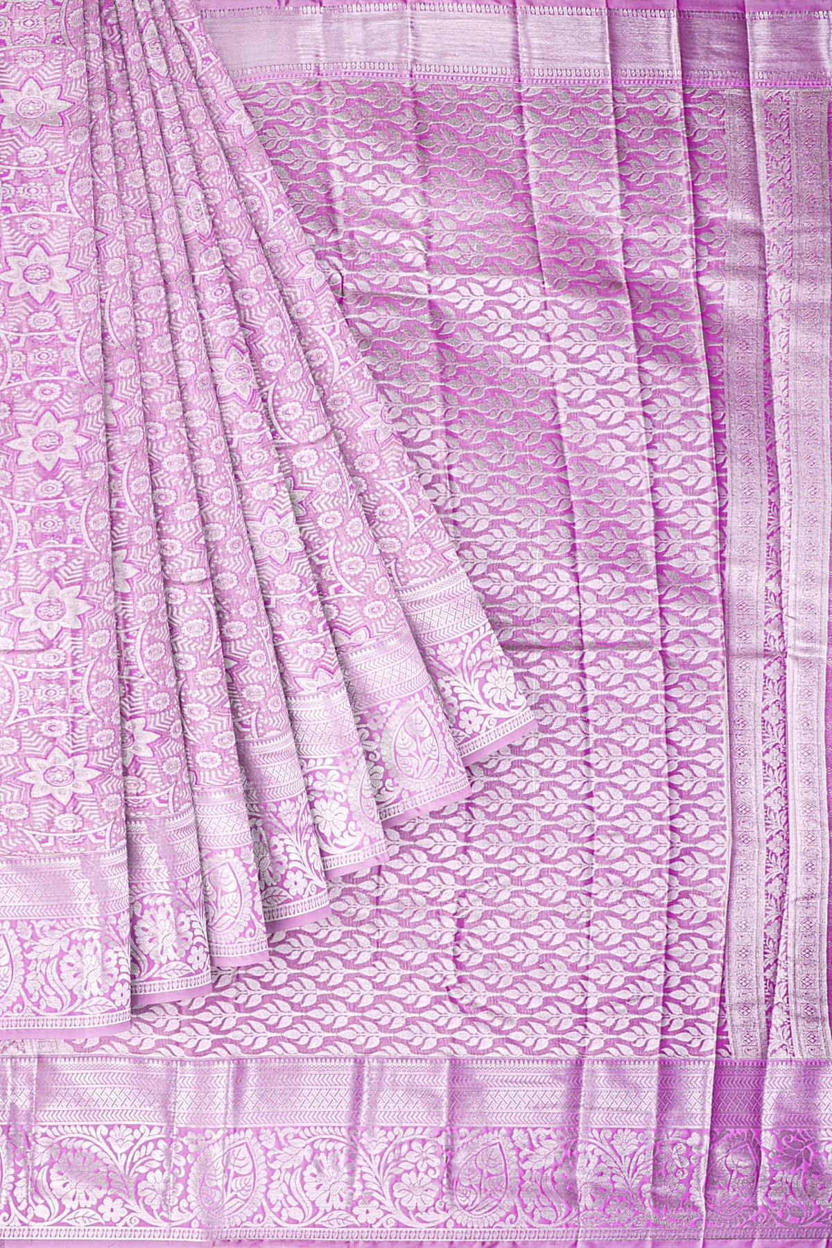 LIGHT PINK and SILVER FLORALS TISSUE SILK Saree with SEMI PATTU