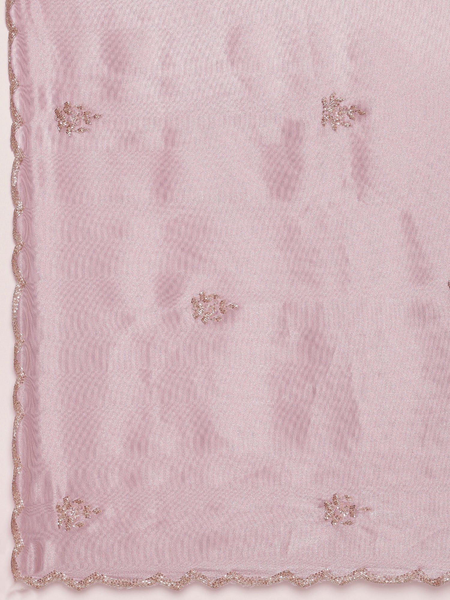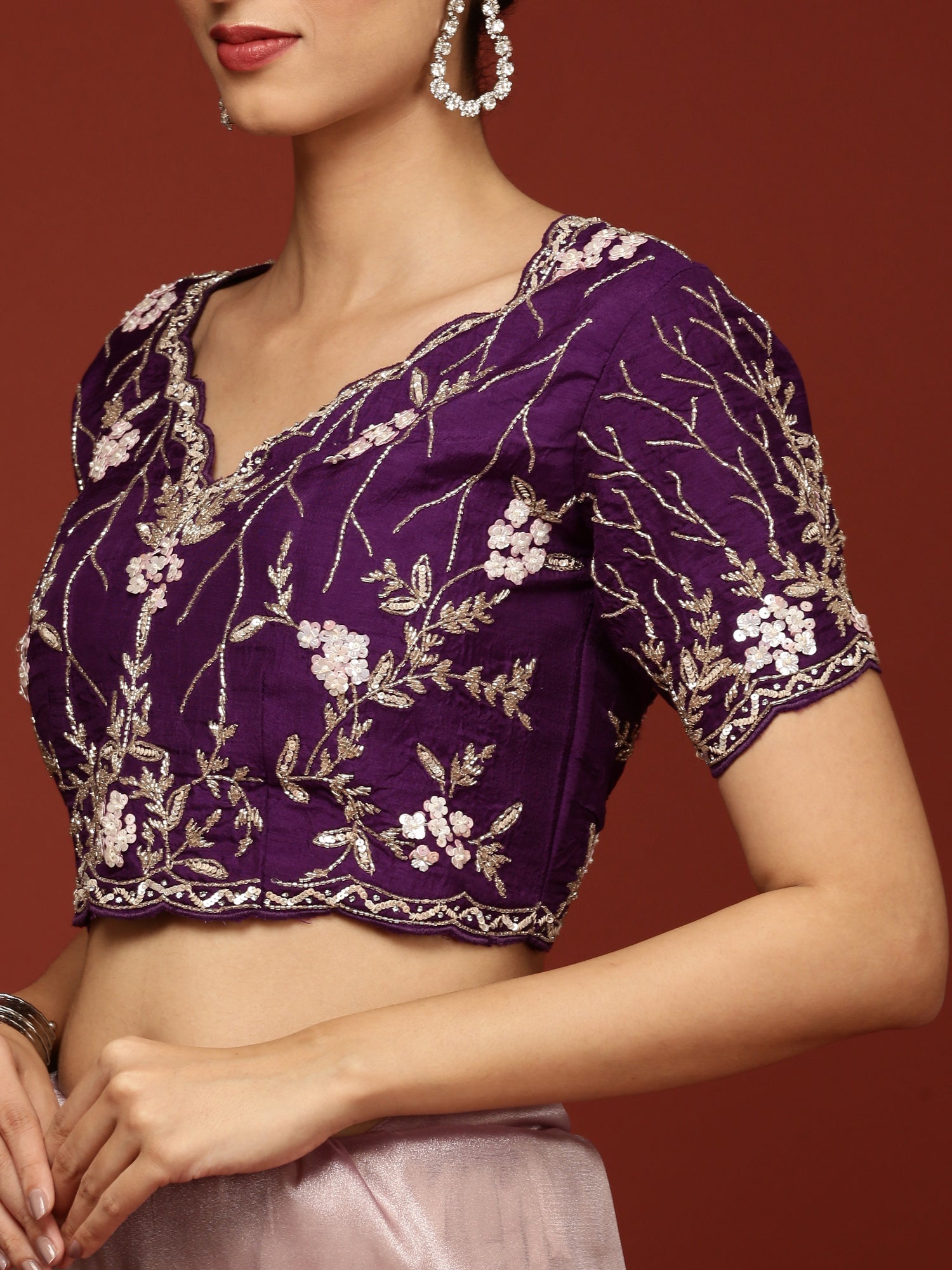 Lilac Tissue Hand Embroidery Saree With Stone Work Readymade Blouse