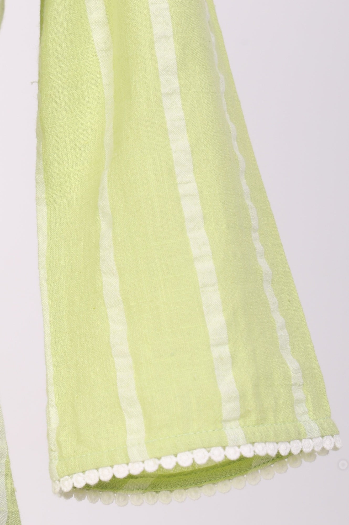 Lime Green Yarn Dyed Striped Lace Pure Cotton Straight Kurta