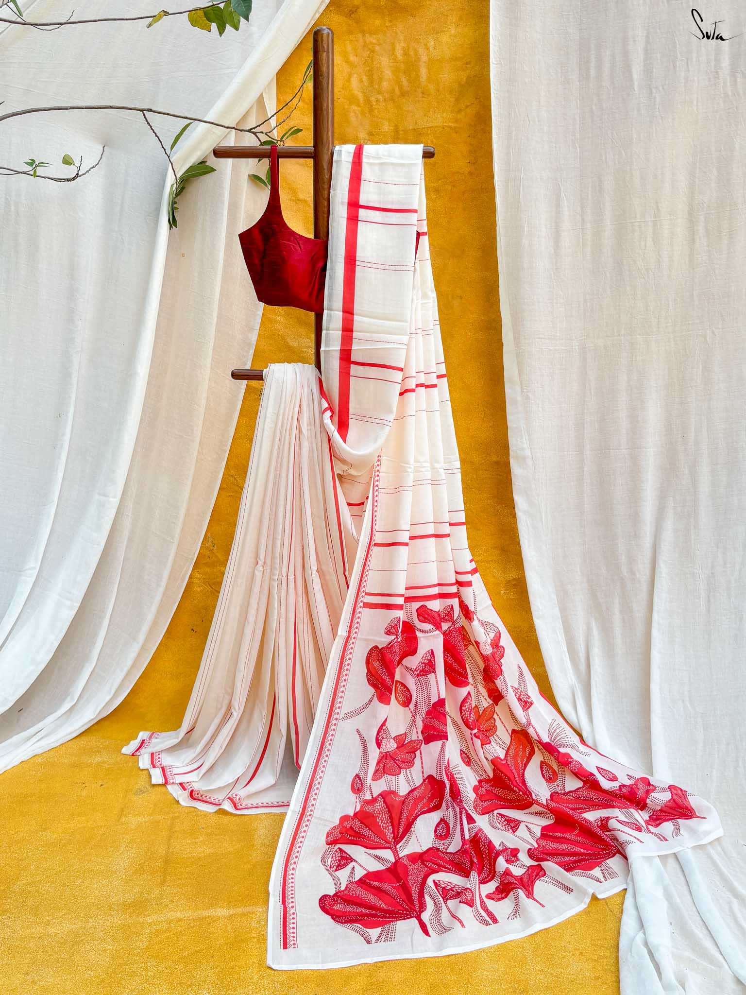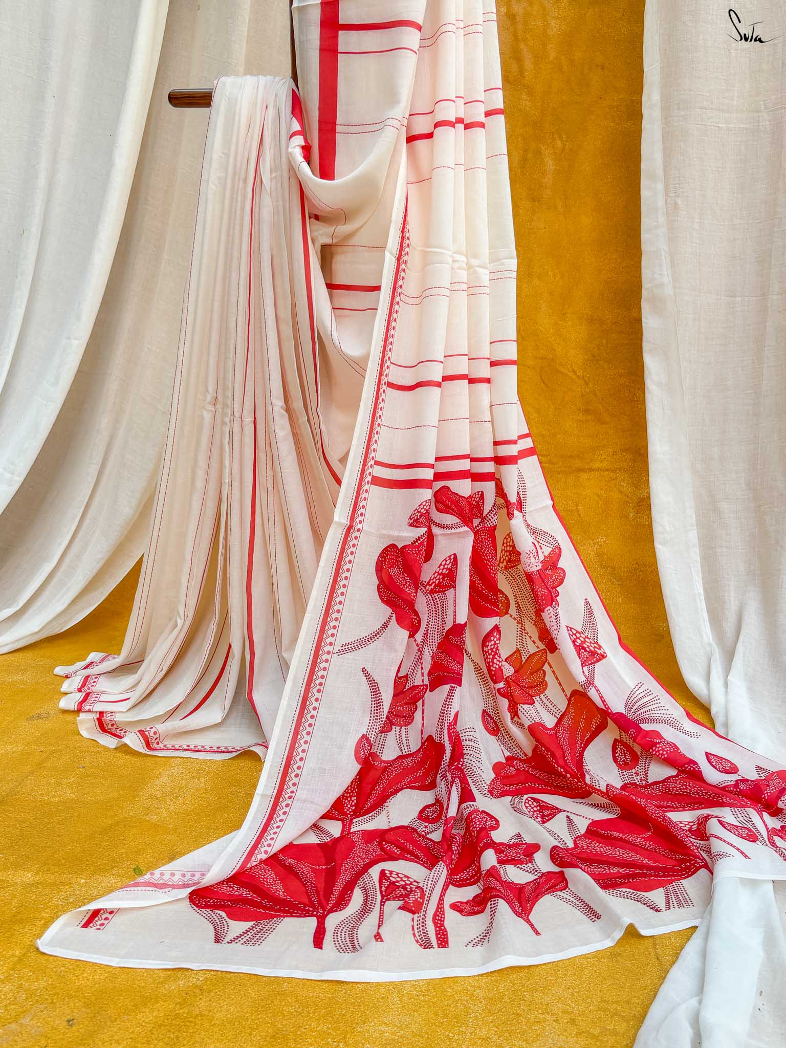 The mul cotton is what we call ˜made in heaven at Suta. Known in West Bengal as mul mul, the fabric is buttery soft and delicately beautiful. The weave of this fabric is very fine, and this lends a very fluid texture to it that makes draping it a breeze. It is truly like a hug that wraps you in its love!