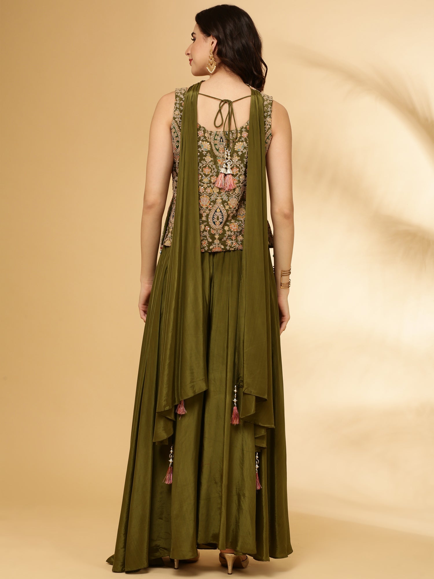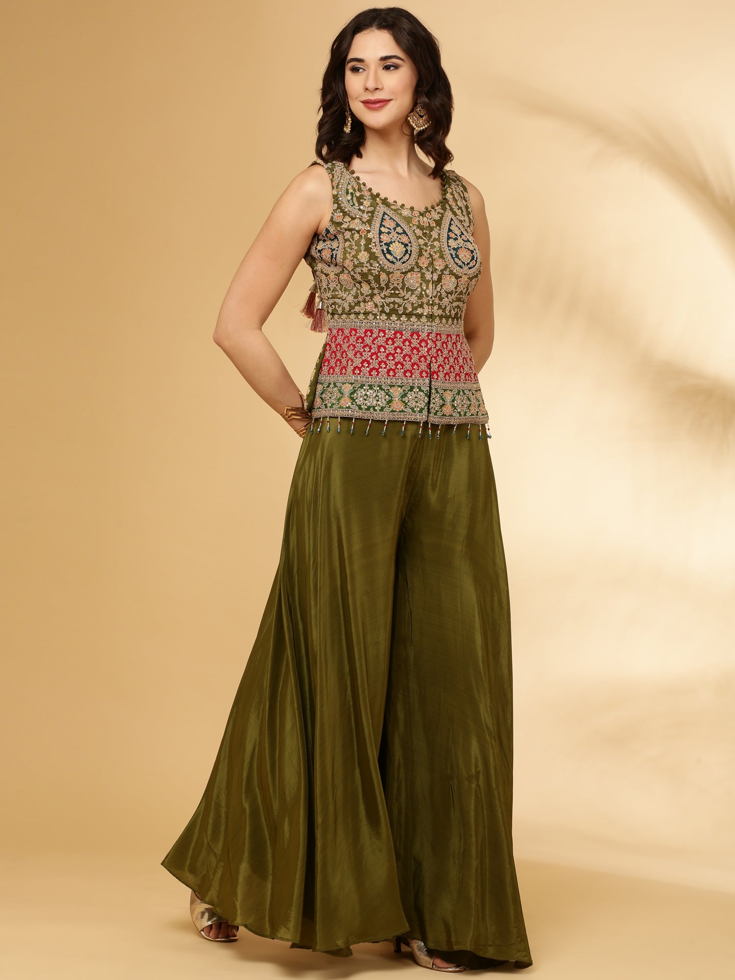 Mehadi Green Chinnon Crop Top Palazzo Set