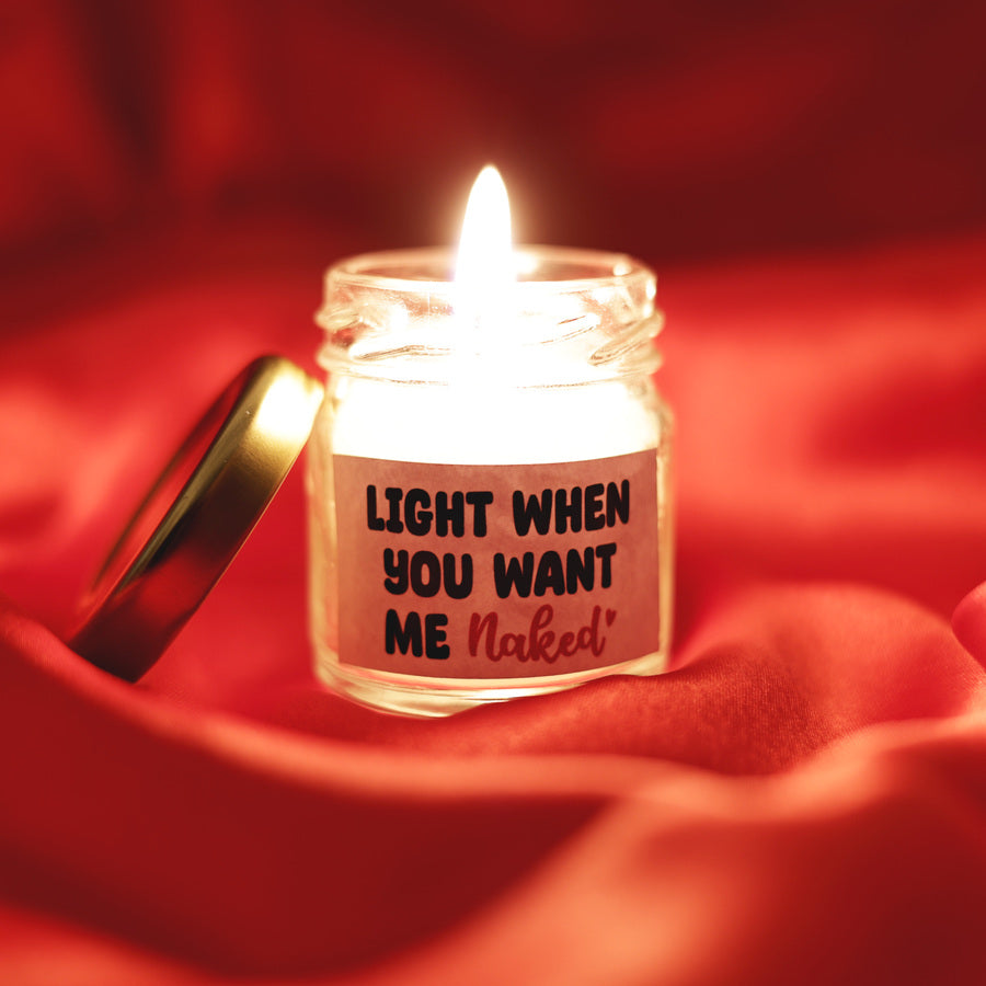 Naughty Candle - Set the mood with this super naughty candle that says 'light when you want me naked'. Light this candle and let it do the talking or maybe the teasing.