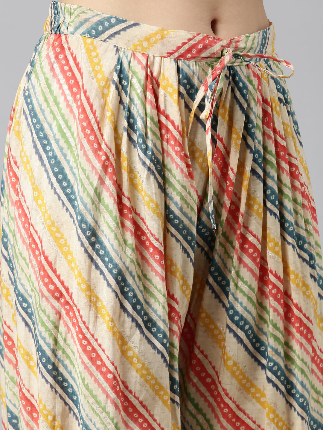 Neeru's Beige Regular Straight Printed Readymade Suits