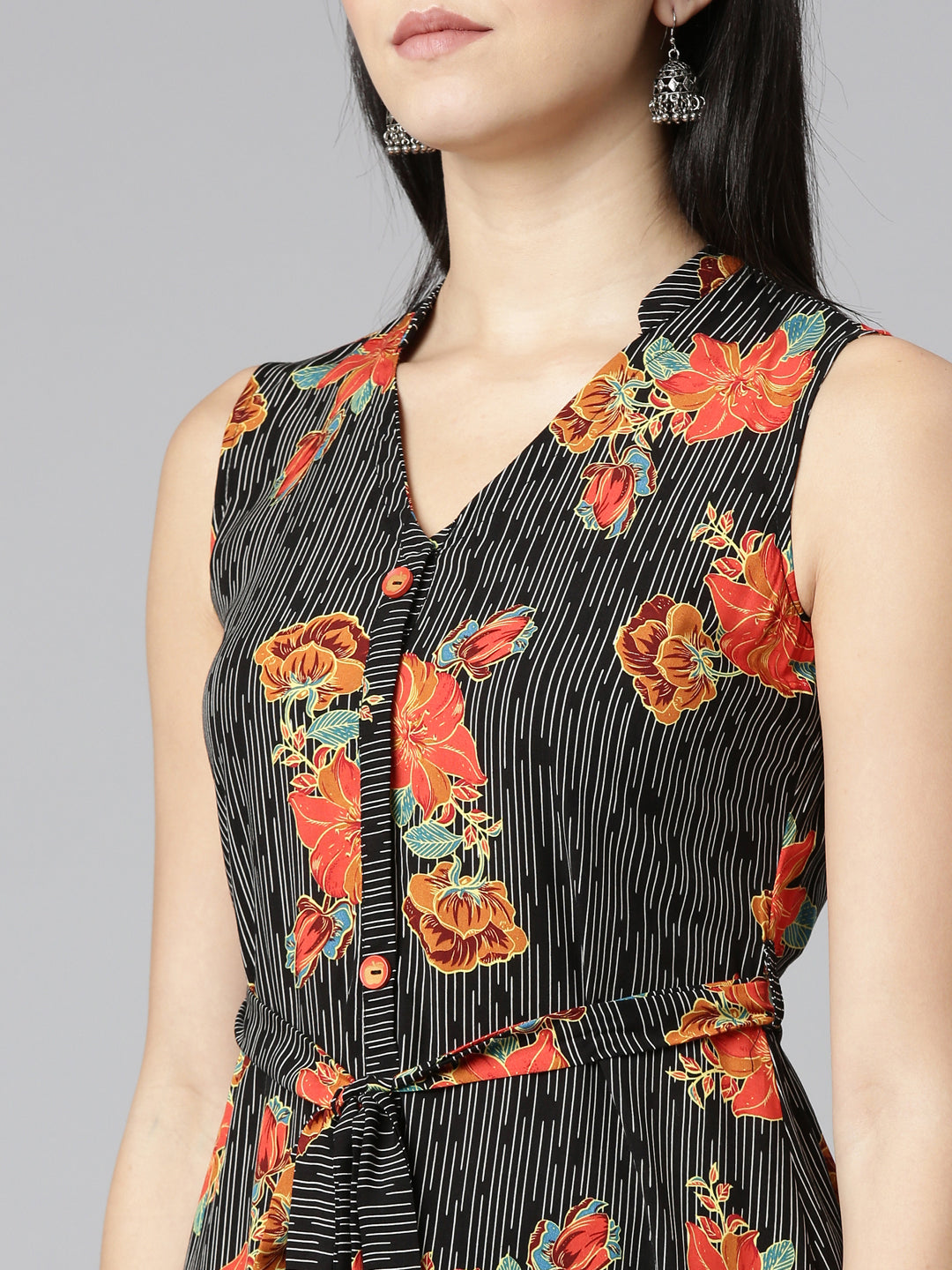 Style Up Your Wardrobe With The Irresistibly Chic Neeru's Black Regular Straight Printed Kurtas!