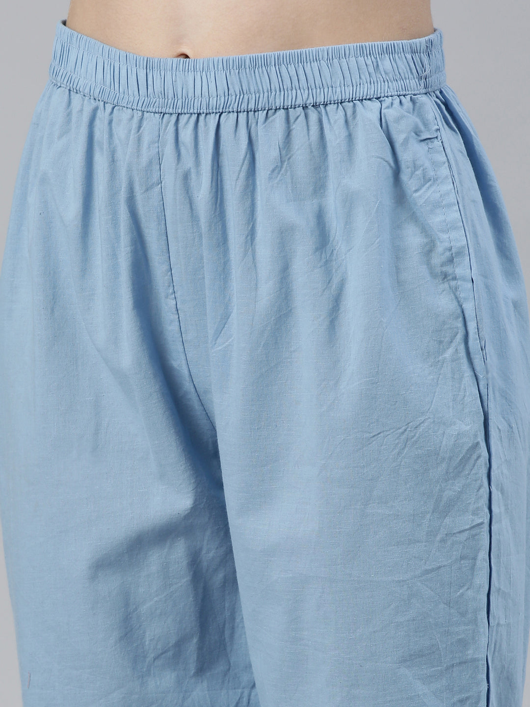 This Exquisite Set Is Crafted From Pure Cotton And Patterned With Luxurious Ethnic Motifs. It Features A Deep V-Neck, ¾ Length Sleeves, A Gorgeous Knee-Length Straight Cut, And A Finely Detailed Hemline. The Trousers And Dupatta Provide A Perfect Finishing Touch For A Timelessly Glamorous Ensemble.