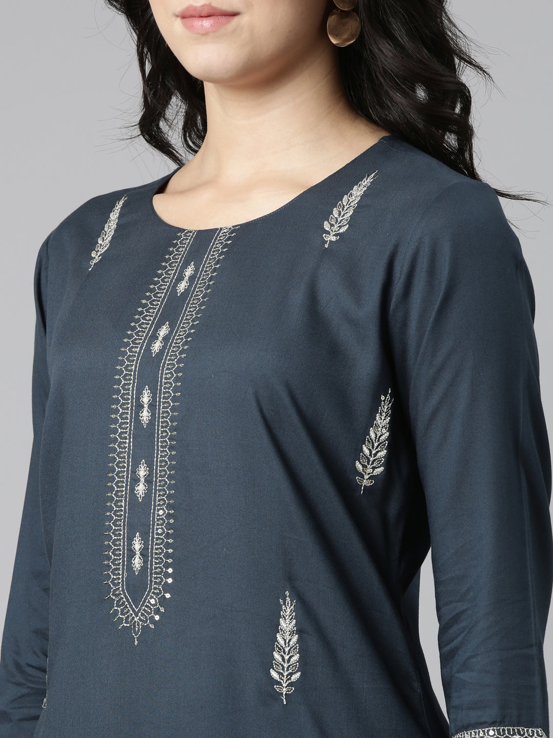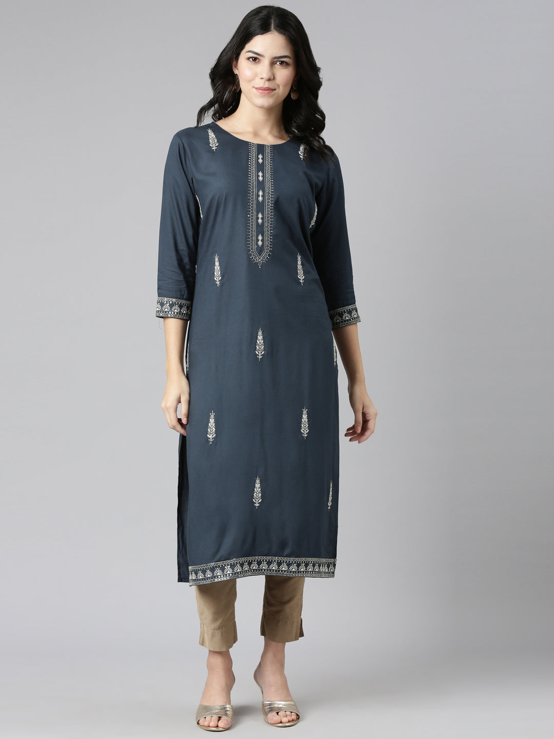 Indulge In The Craftsmanship Of The Neeru's Blue Regular Straight Embroidered Kurtas, Crafted To Exude Sophistication And Elegance.