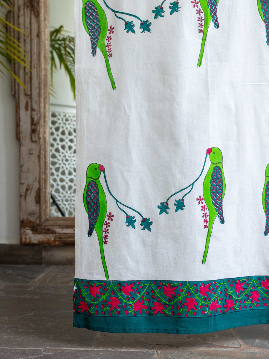 Parrot Block Printed Cotton Curtain