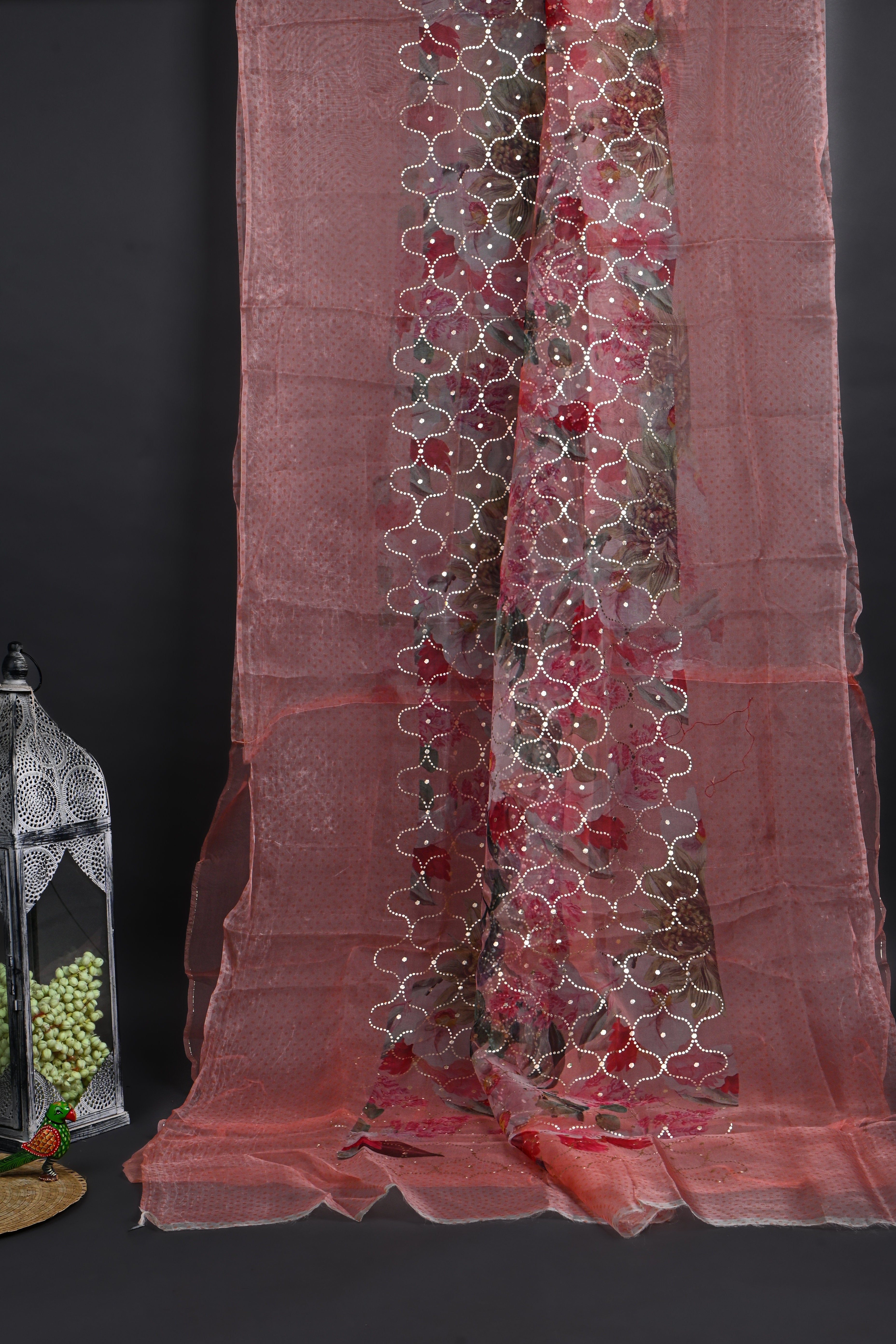 Pastel Pink Floral Printed Organza Saree