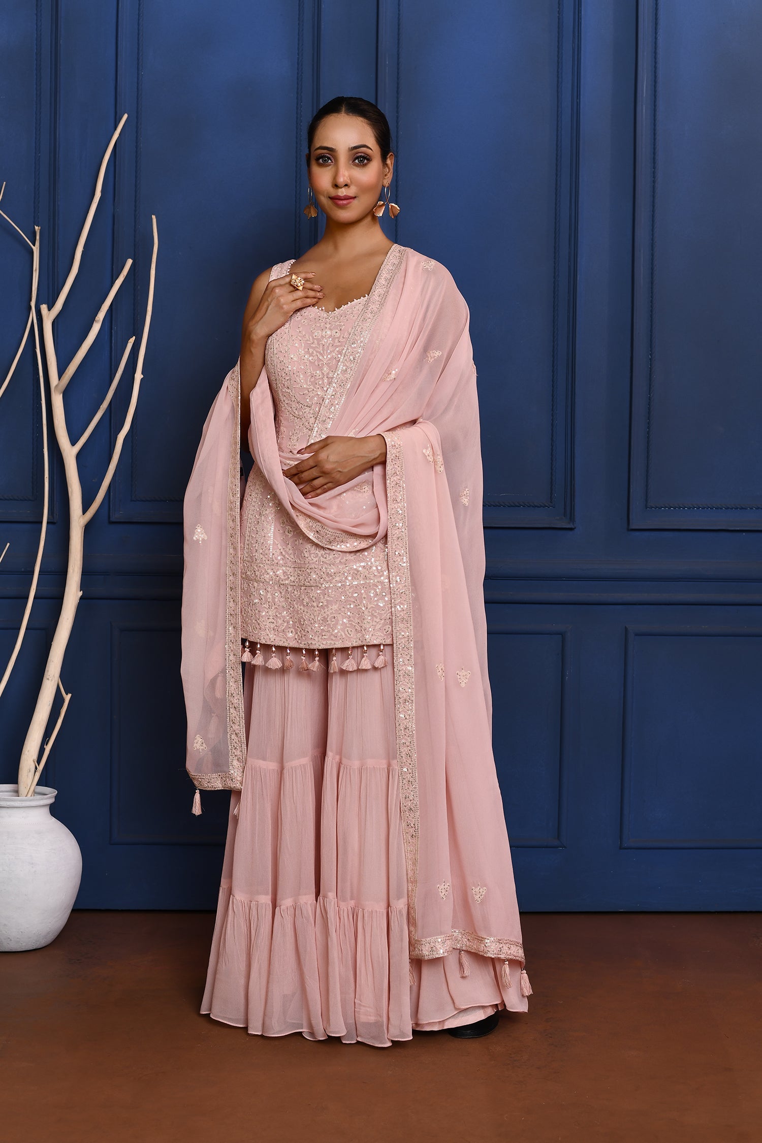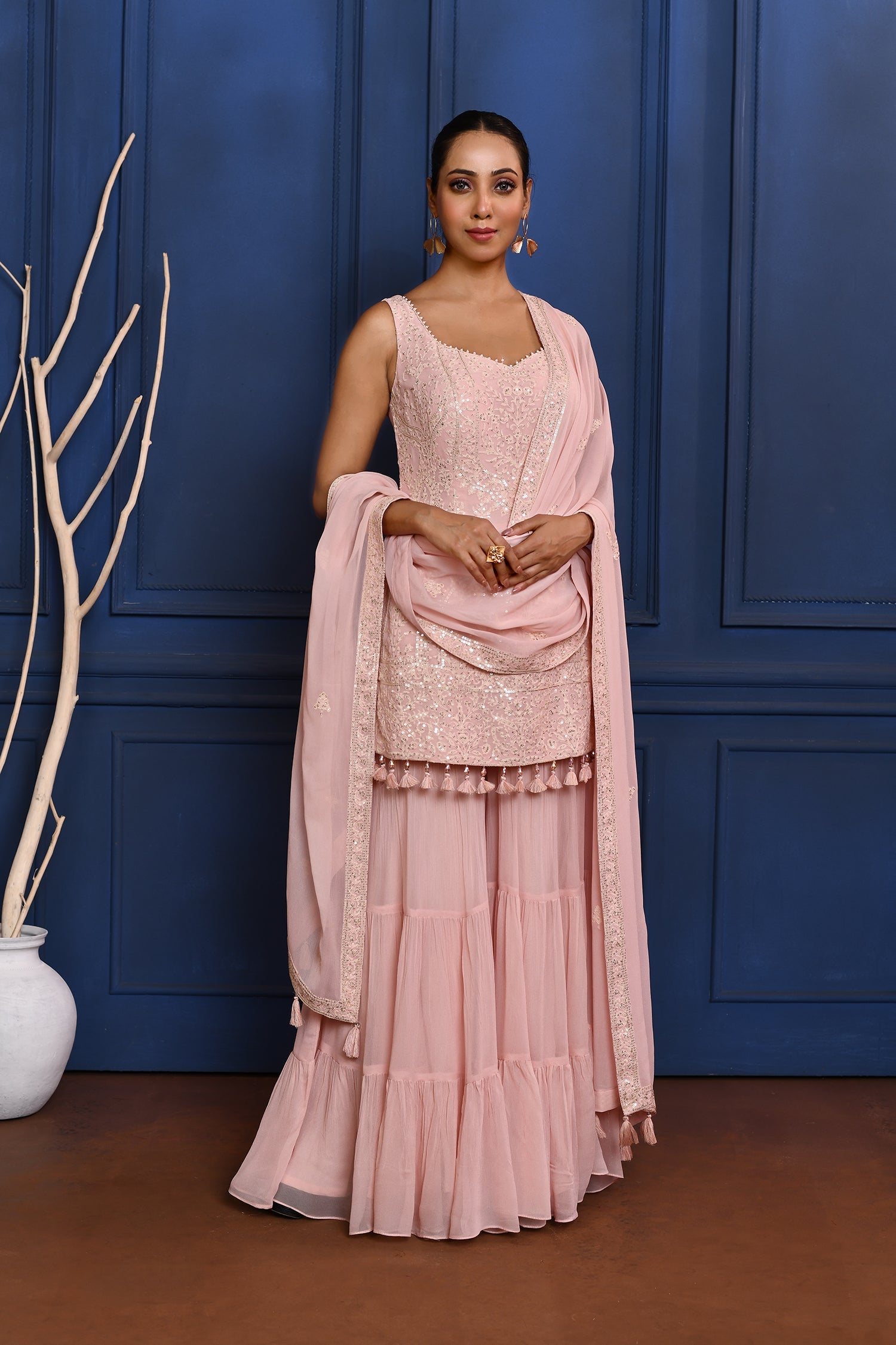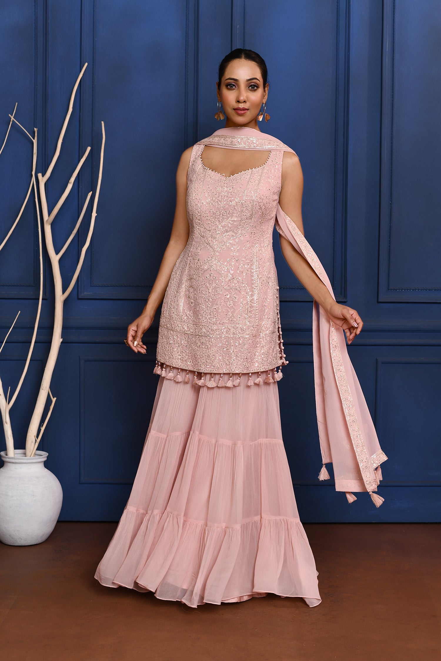 Pastel Soft Pink Embroidered Georgette Sharara Set