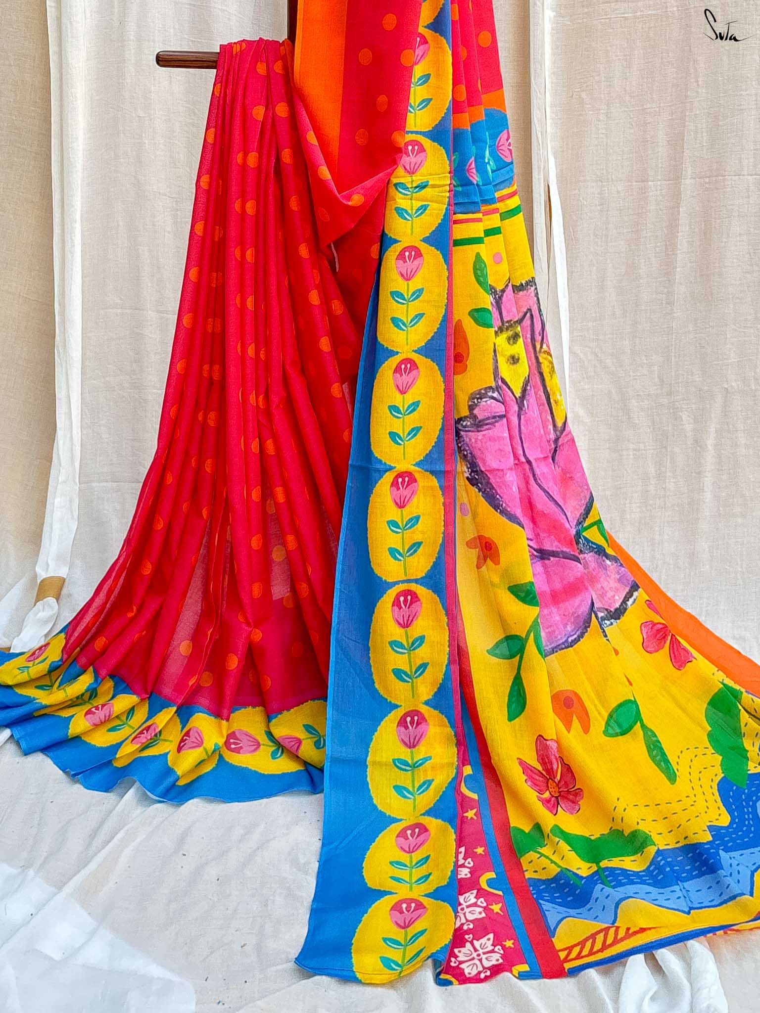 The mul cotton is what we call ˜made in heaven at Suta. Known in West Bengal as mul mul, the fabric is buttery soft and delicately beautiful. The weave of this fabric is very fine, and this lends a very fluid texture to it that makes draping it a breeze. It is truly like a hug that wraps you in its love!