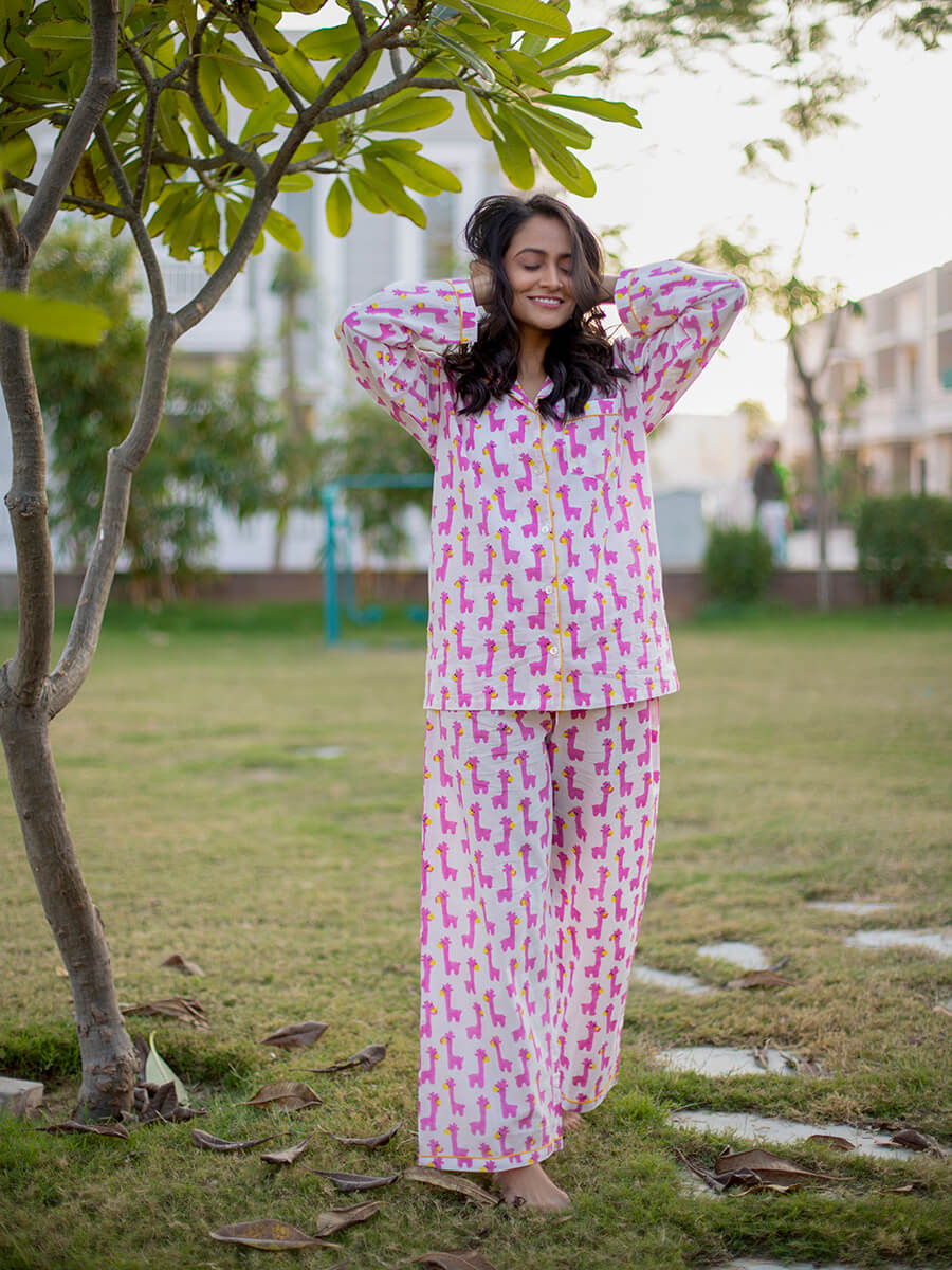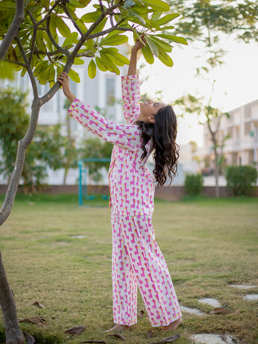 Pink Giraffe Soft Cotton Pyjama Set