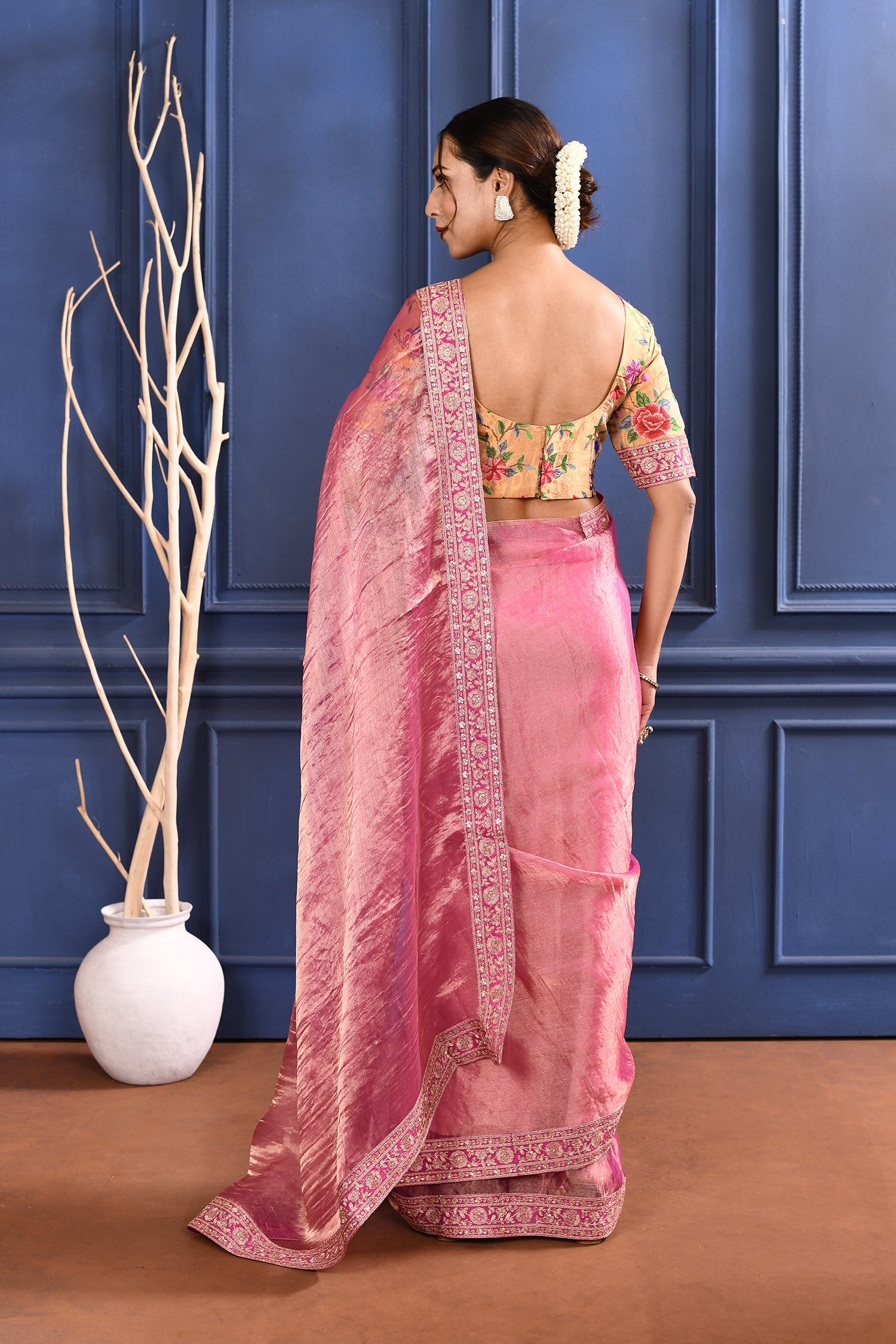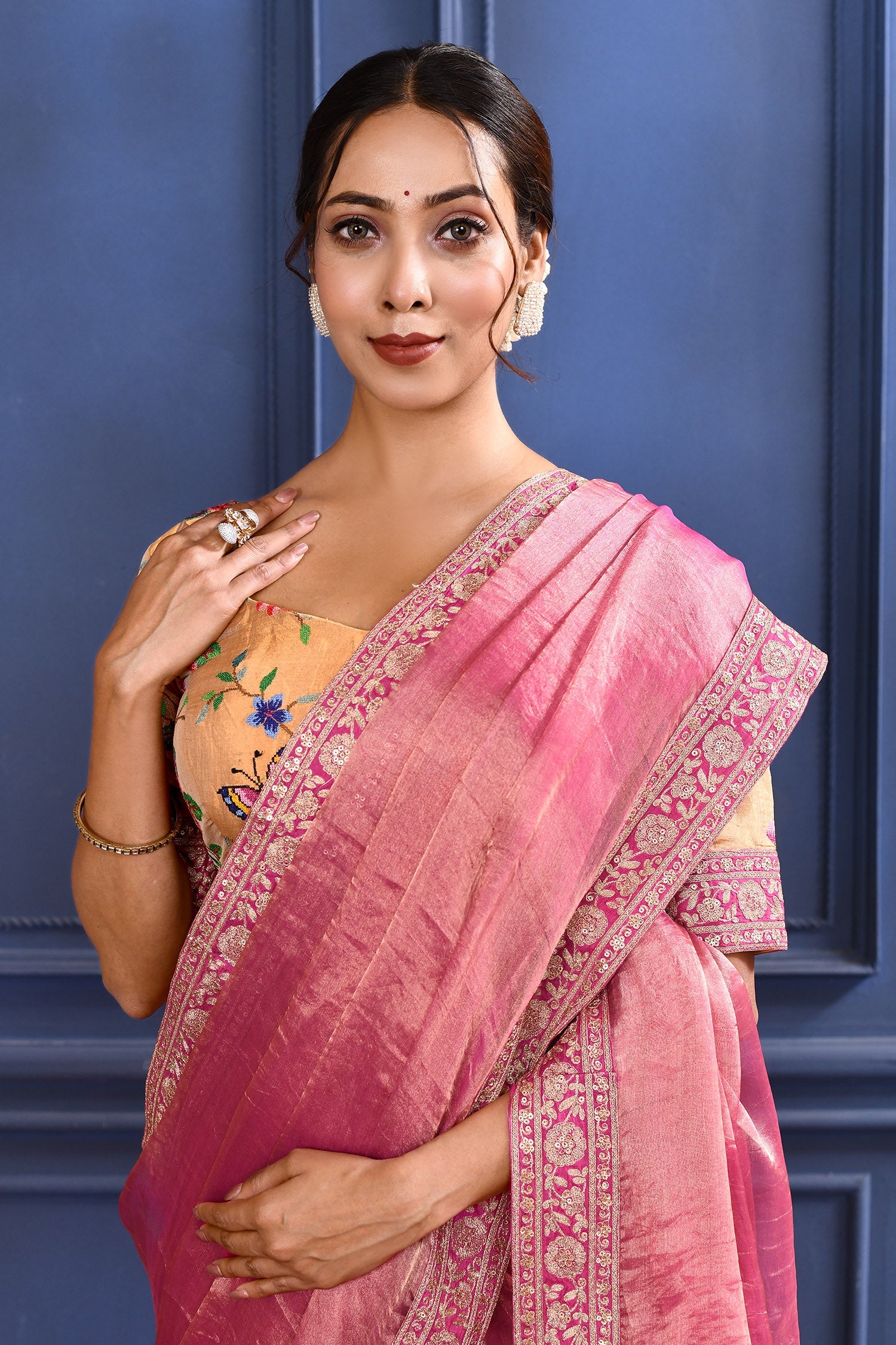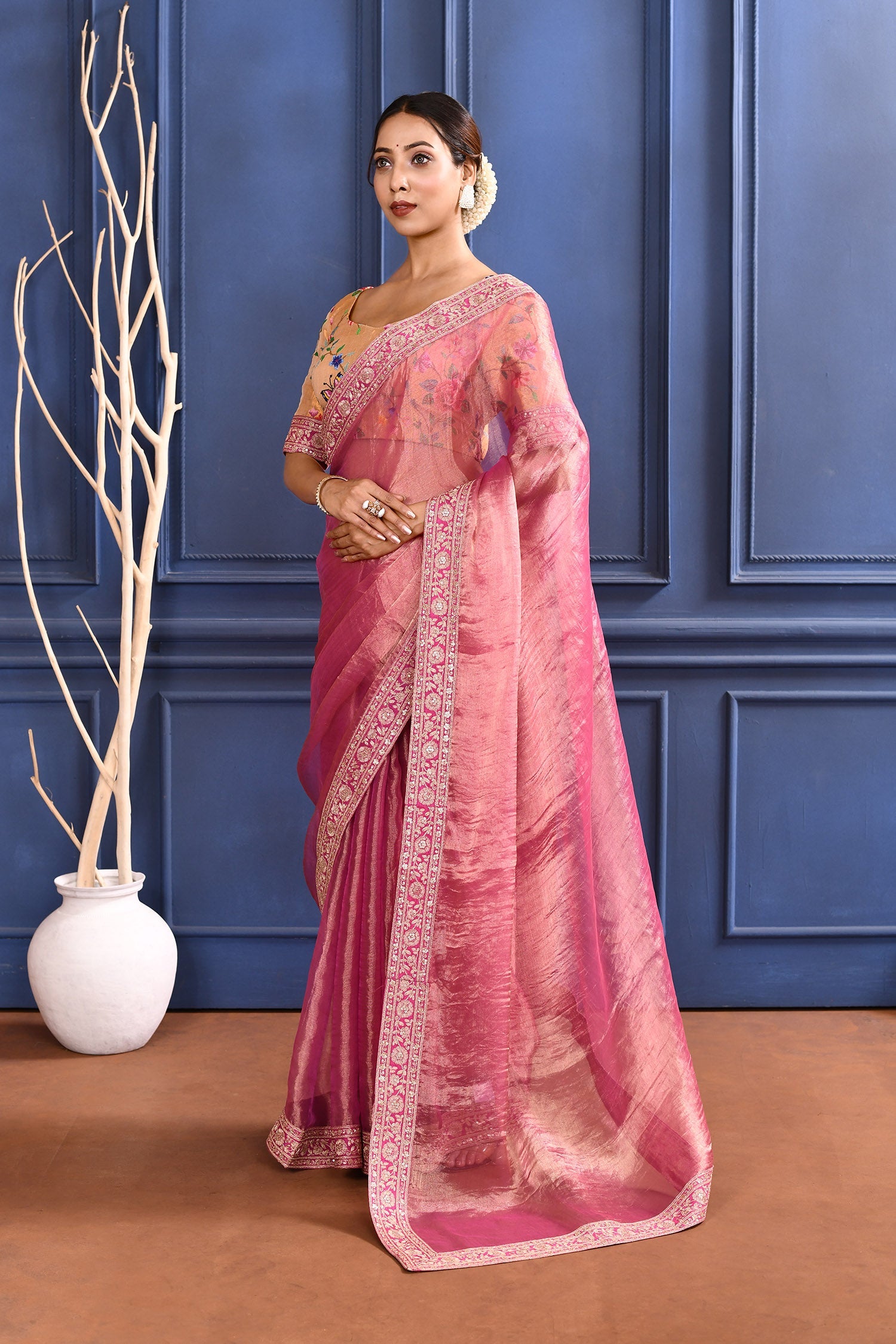 Raspberry Pink Embroidered Tissue Saree