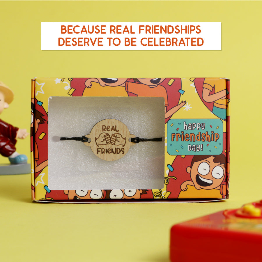 Curious about how to celebrate friendship day? Well, friendship bands are back in fashion! And your friends are gonna love this adorable friendship band designed with a wooden centerpiece that has ‘real friends’ engraved on it.