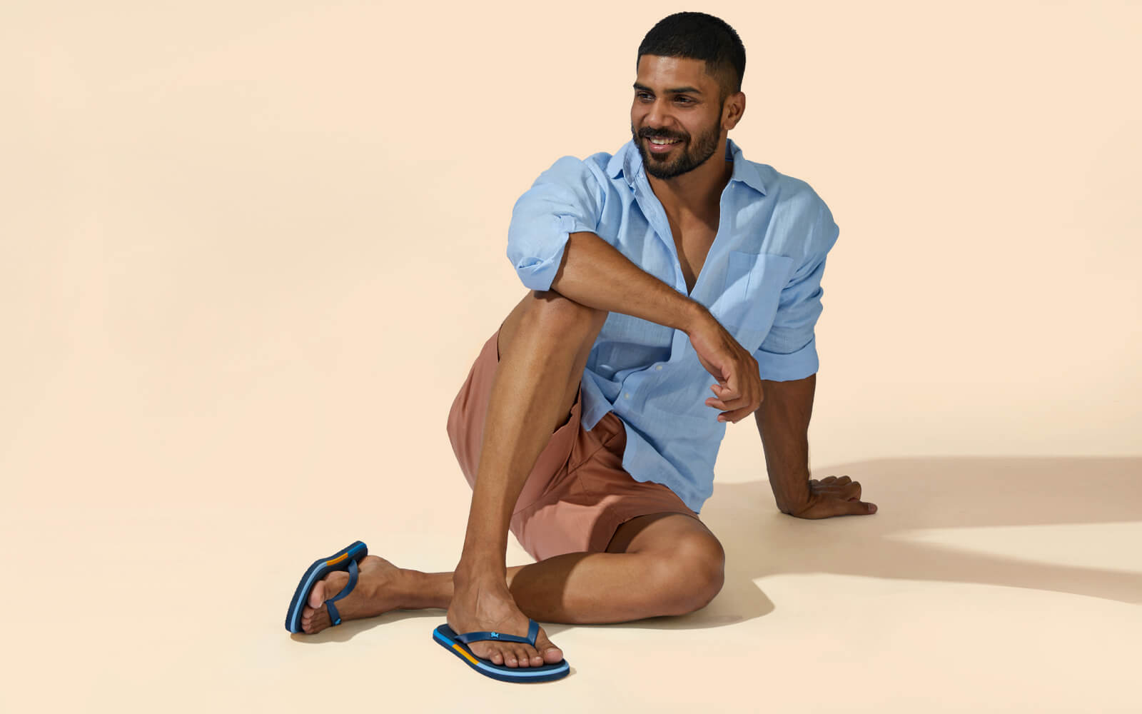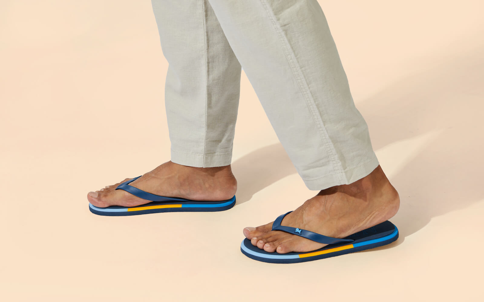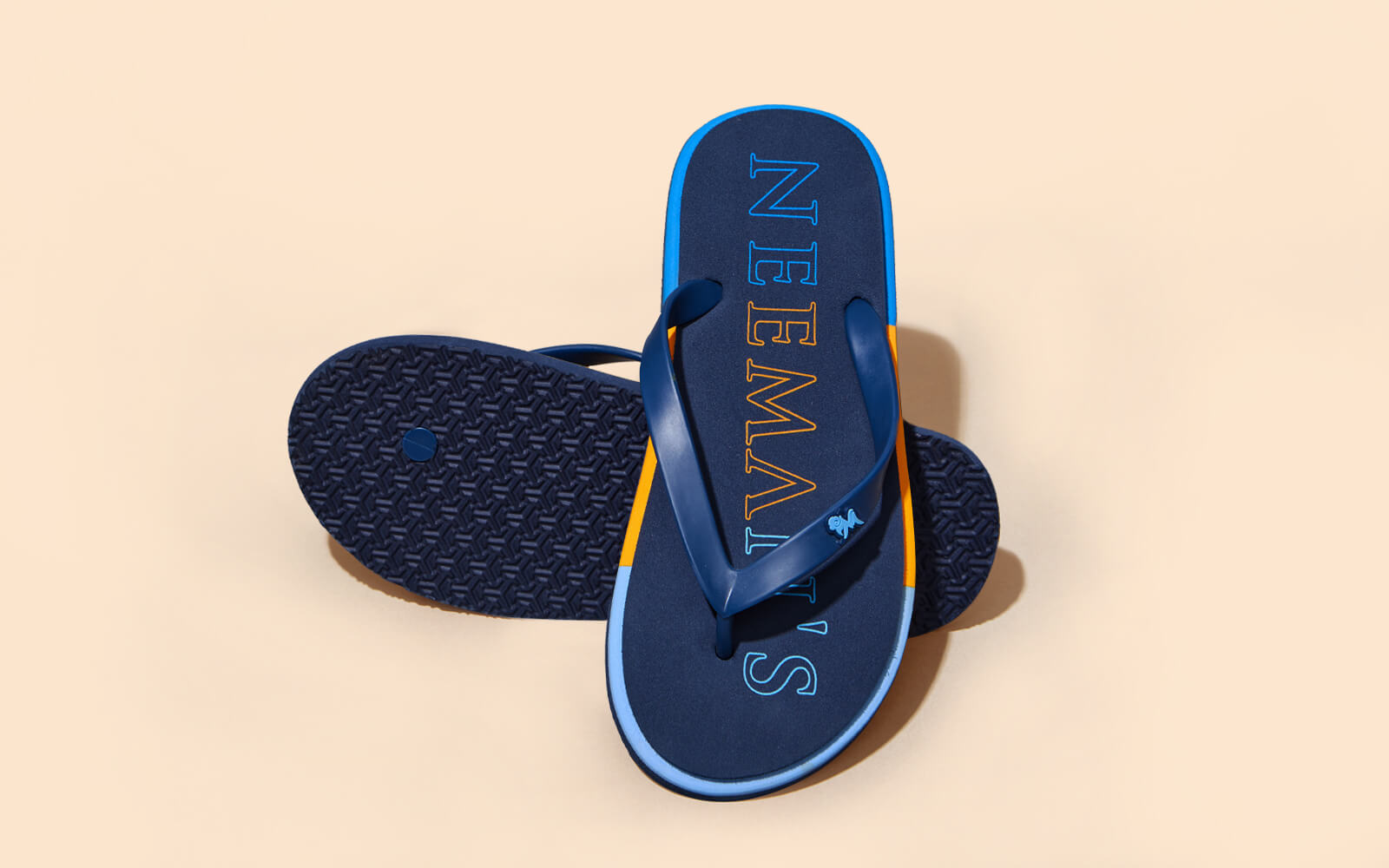 All the joys of a relaxing vacation, packed in a pair of flip-flops. Presenting our all-new Recreation Flips for men, your pause button on a hectic day. Durable, water-resistant, cushioned, and featuring fun color play– these were created to become your ideal go-to slippers.