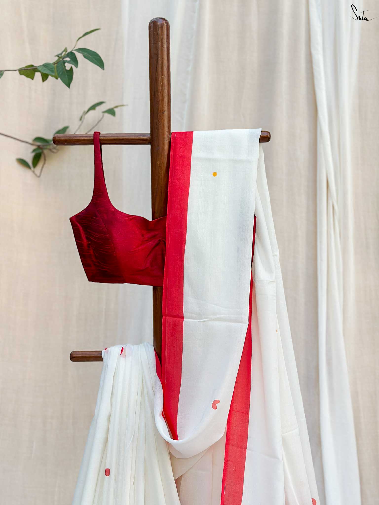 Note: Our mul sarees are slightly transparent, it’s the nature of the fabric and part of its soft, airy charm.