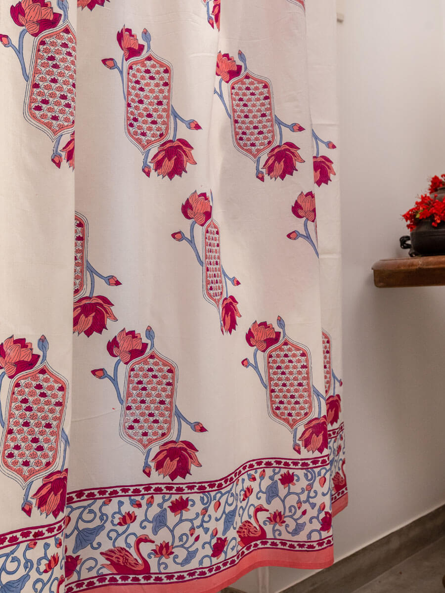 Padma or the Lotus is a central figure in many art forms including Pichhwai. It's a flower with meaning, beauty, and great cultural significance. The origin of the Lotus in Hindu mythology goes as far back as 'Samudra Manthan'. Its first association is with Lakshmi who also emerges from 'Samudra', hence, is referred to as Padmaja or Padmavati. This hand block printed home textiles collection is inspired by the beautiful lotus and other nature inspired elements.