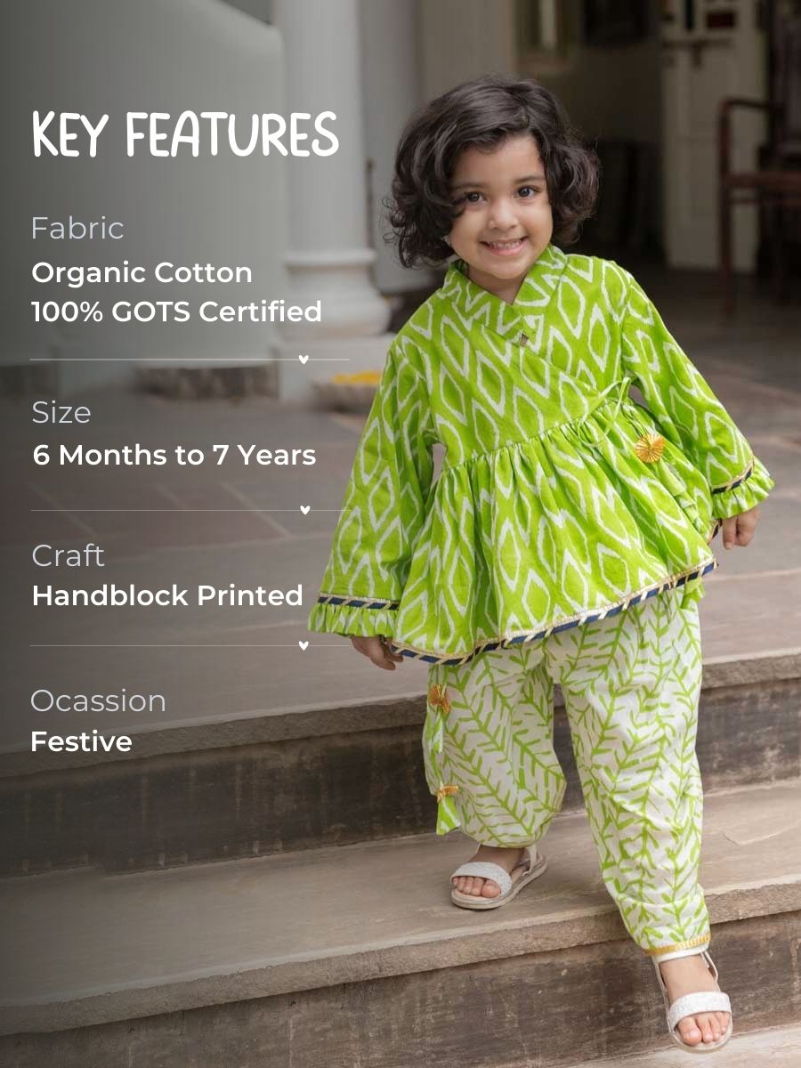 Set of 2 - Rose Block Printed Cotton Angrakha with Dhoti