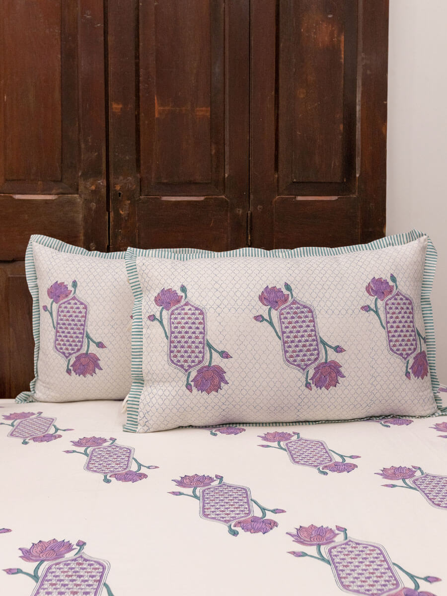 Padma or the Lotus is a central figure in many art forms including Pichhwai. It's a flower with meaning, beauty, and great cultural significance. The origin of the Lotus in Hindu mythology goes as far back as 'Samudra Manthan'. Its first association is with Lakshmi who also emerges from 'Samudra', hence, is referred to as Padmaja or Padmavati. This hand block printed home textiles collection is inspired by the beautiful lotus and other nature inspired elements.