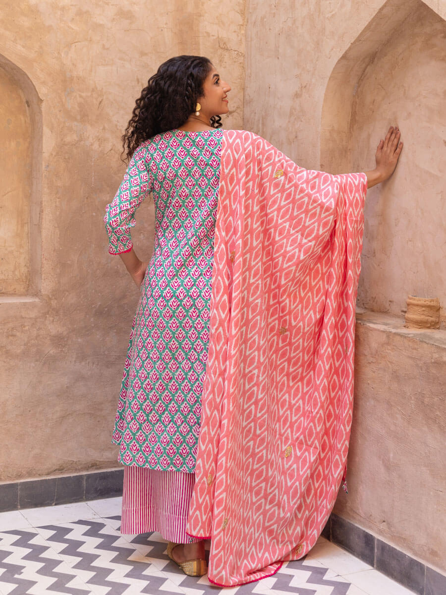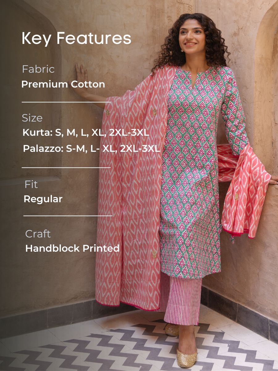 Set of 3 - Bhumi Cotton Kurta, Palazzo and Dupatta