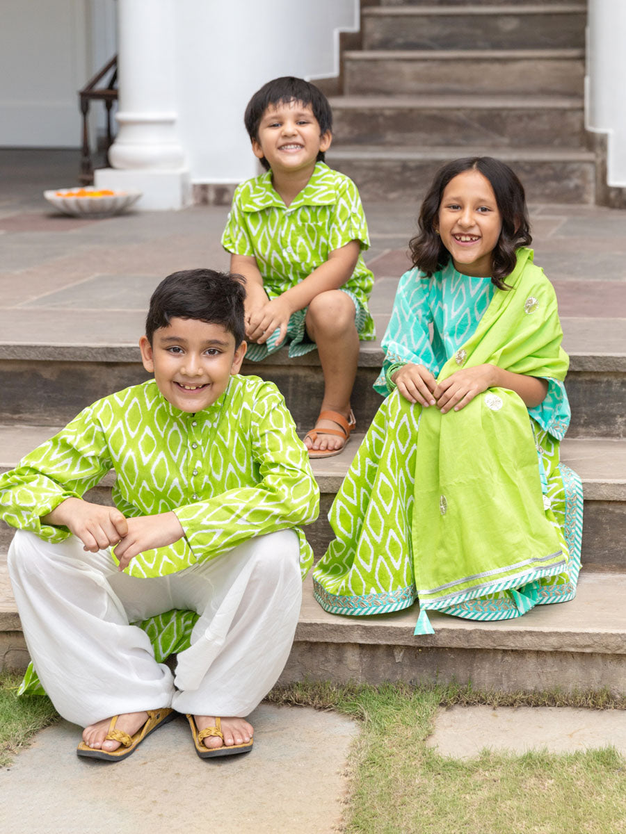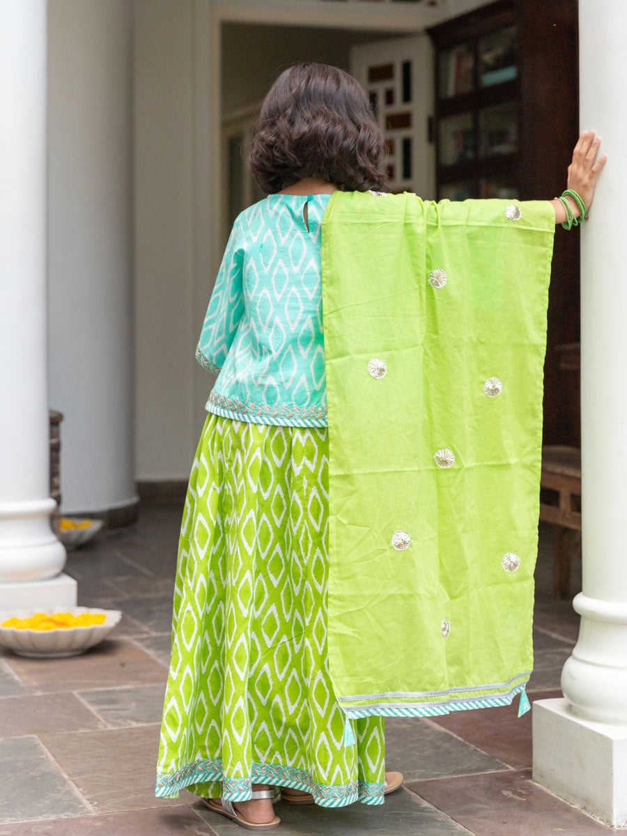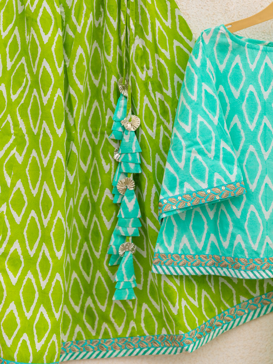 Set of 3 - Lilly Block Printed Cotton Lehanga
