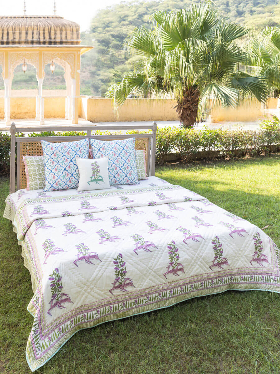 - Set includes: 1 Double quilt, 1 Double size bedsheet with pillow covers, Set of 2 cushions and 1 cushion