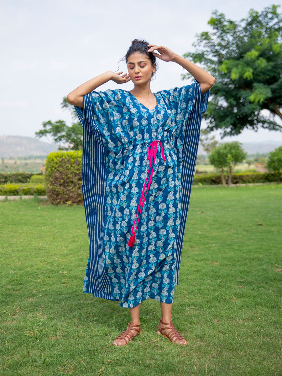 Siyahi Indigo Hand Printed Cotton Kaftan