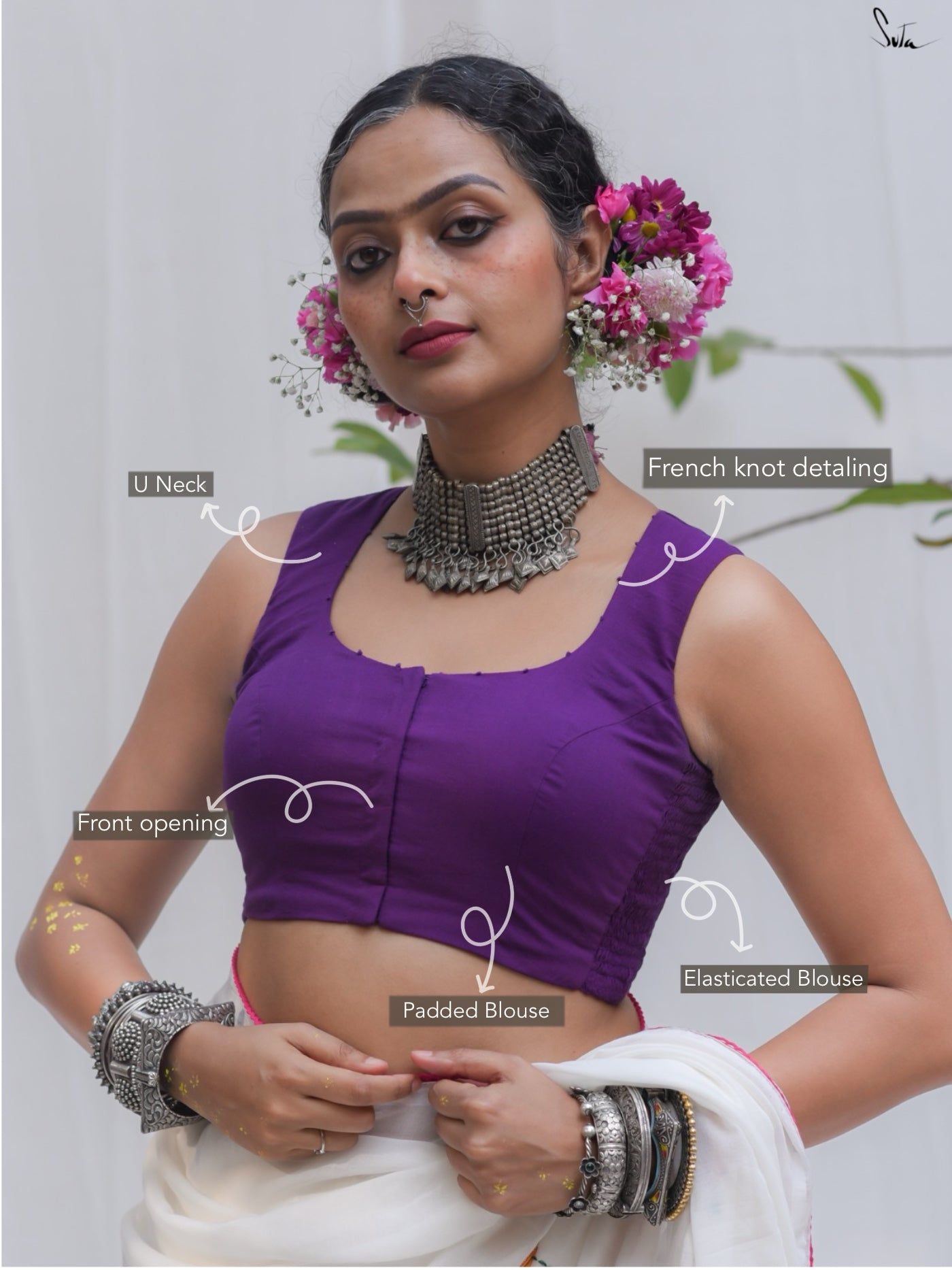 Note: Our blouse comes with an extra margin, allowing you to easily size up for a perfect fit.