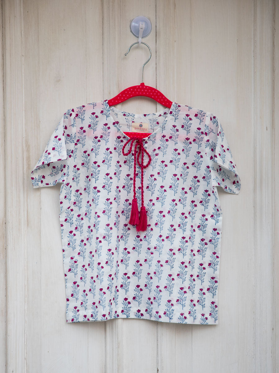 Crafted in 100% GOTS certified organic cotton, these hand block print tops make for a cute addition in your child's wardrobe. Team them up with our beautiful layered skirts or comfort pants!