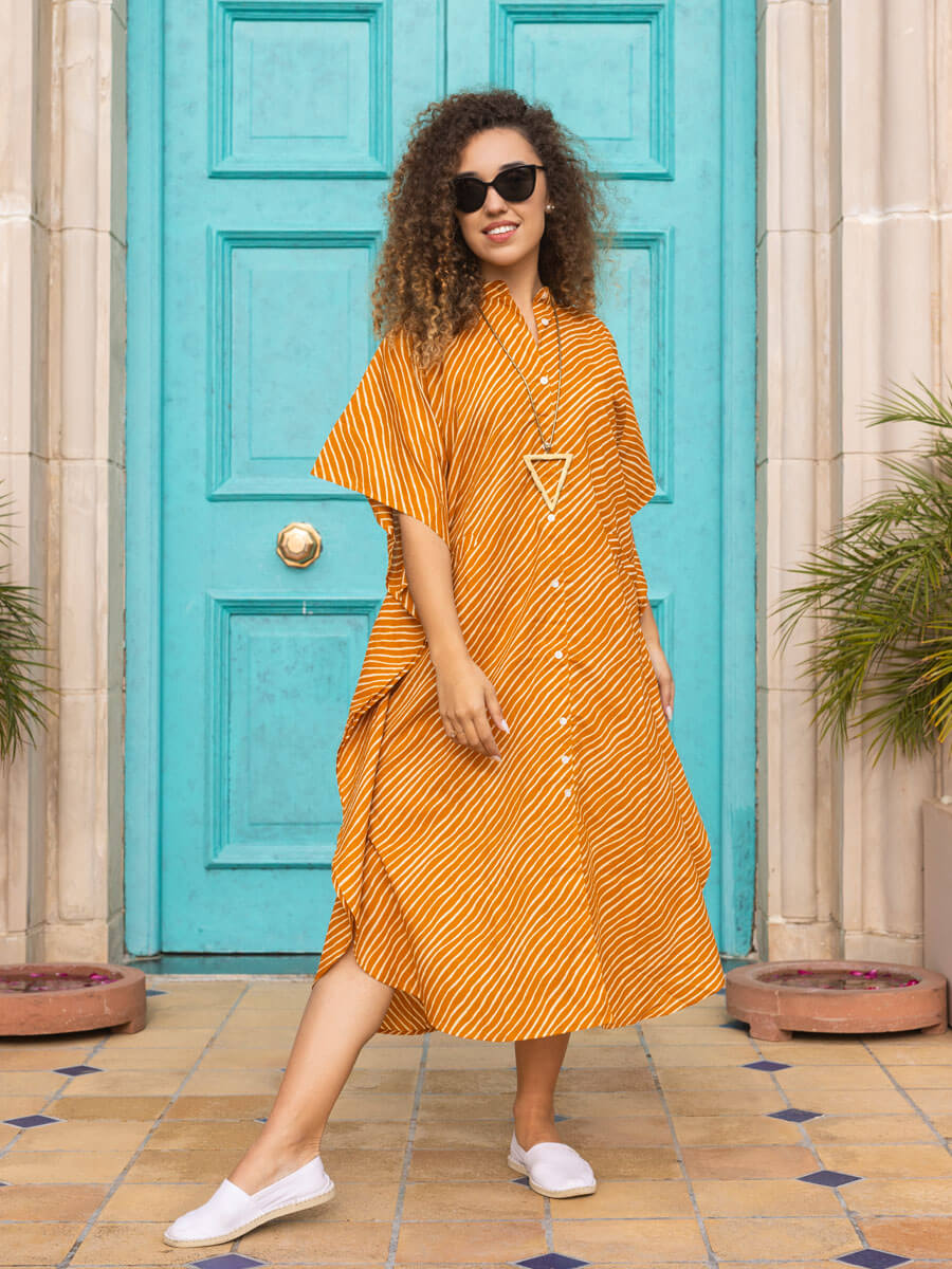 Sunset and Wine Cotton Kaftan Shirt Dress