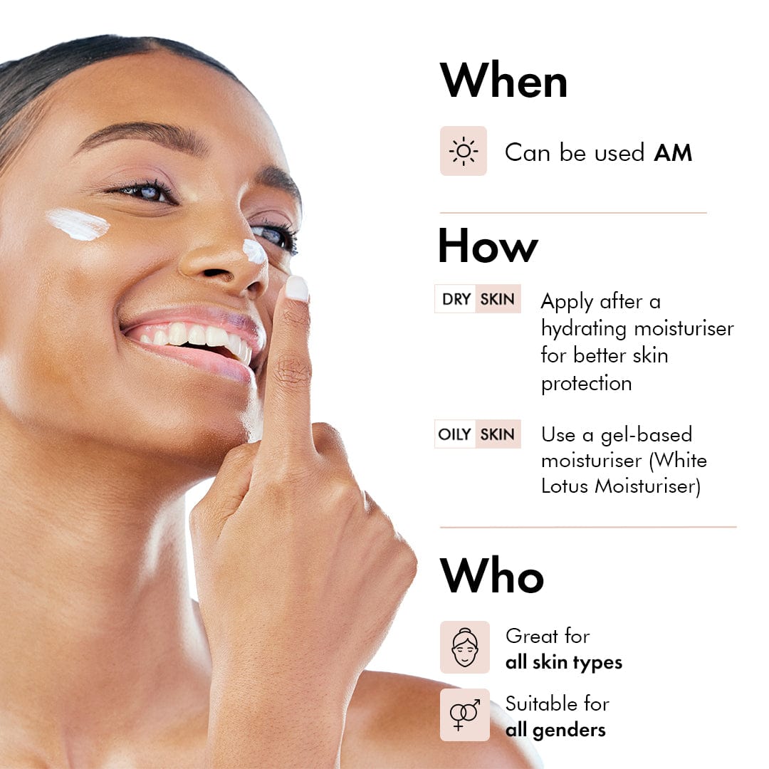 Use it in the AM/ PM routine, after using a toner. Follow it up with a moisturiser and sunscreen (during the day). Begin using 3 times a week, gradually increasing the frequency week on week.