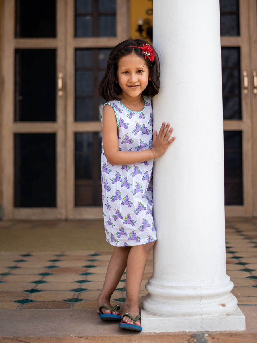 Unicorn Everyday Organic Cotton Block Printed Dress With Pocket