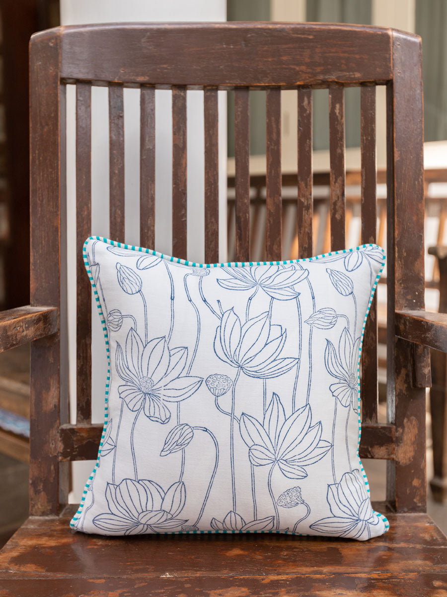- Reversible square cotton cushion cover with lotus motif