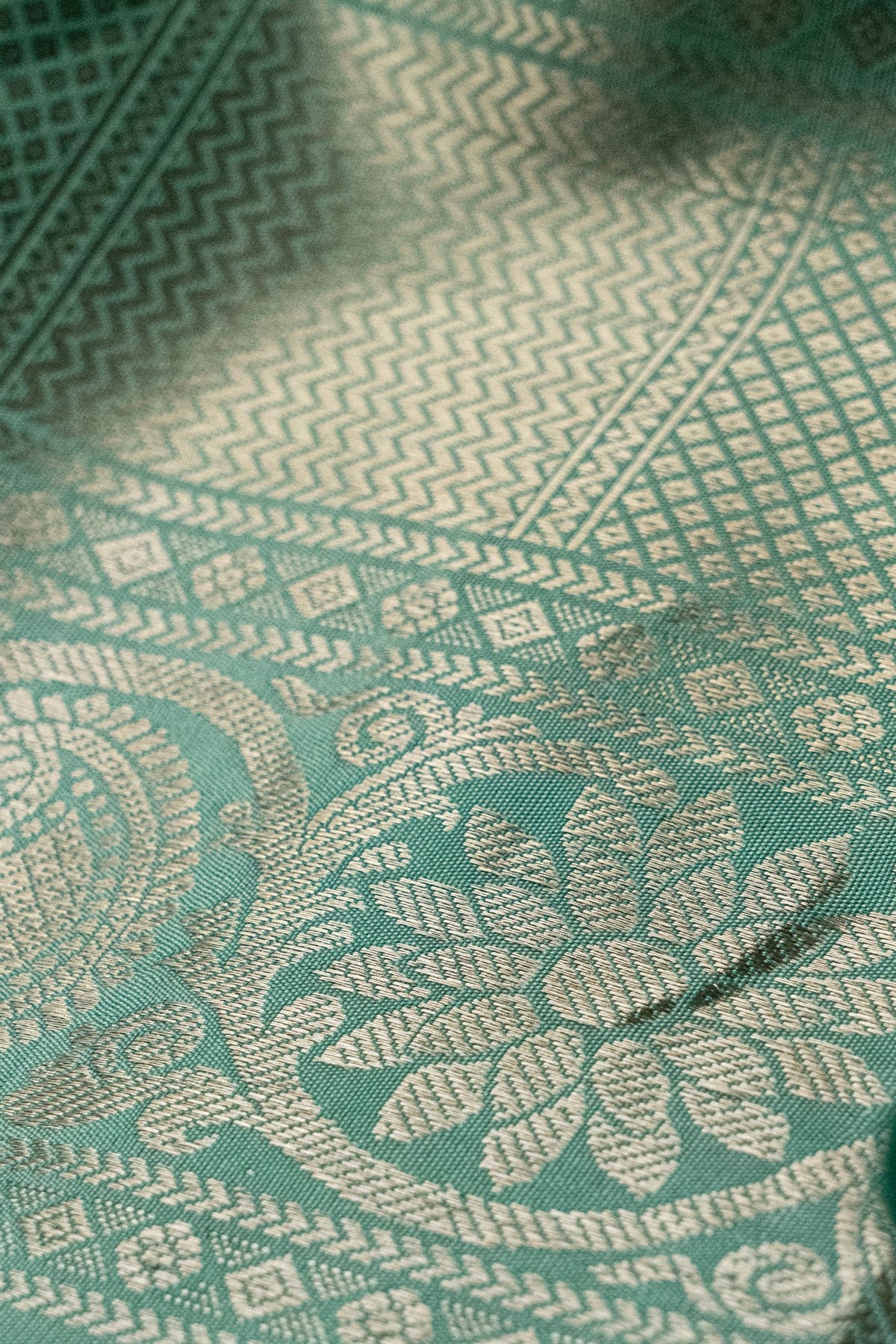 Varamahalakshmi Light Beige & Sea Green Gadwal Buttis Saree