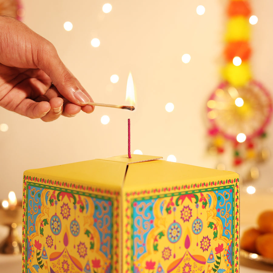 Introducing India’s First Patakha Box — a one-of-a-kind festive surprise that looks like a cracker but opens up as a magical hamper. It’s designed to give you the joy of lighting something special without any noise, or pollution.