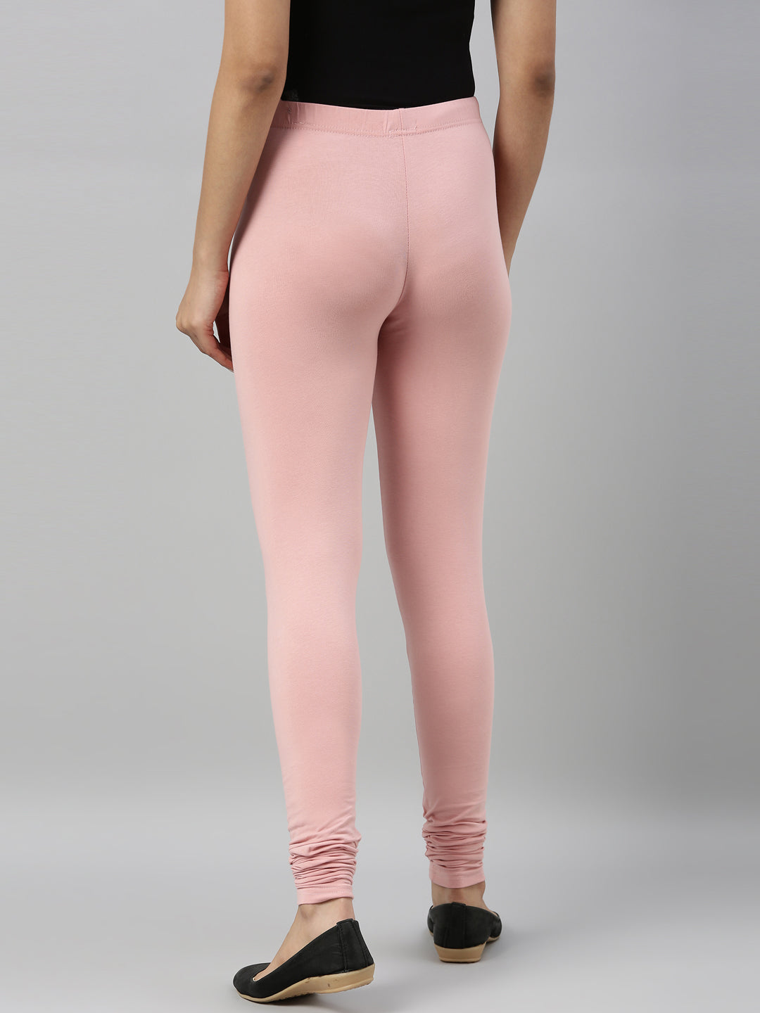 Go chic with a pair of Baby Pink Solid Churidar Leggings. Made from high quality cotton, it has a elasticised waistband & gathers at the hemline.