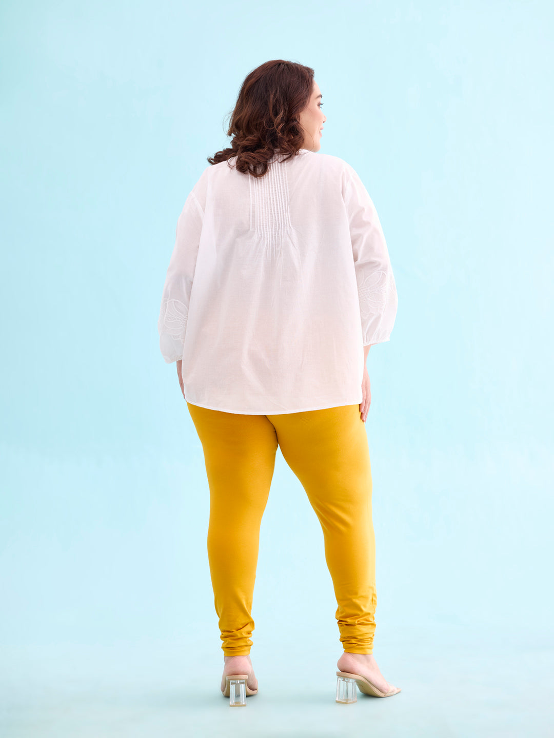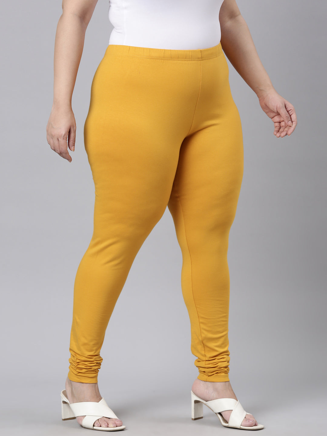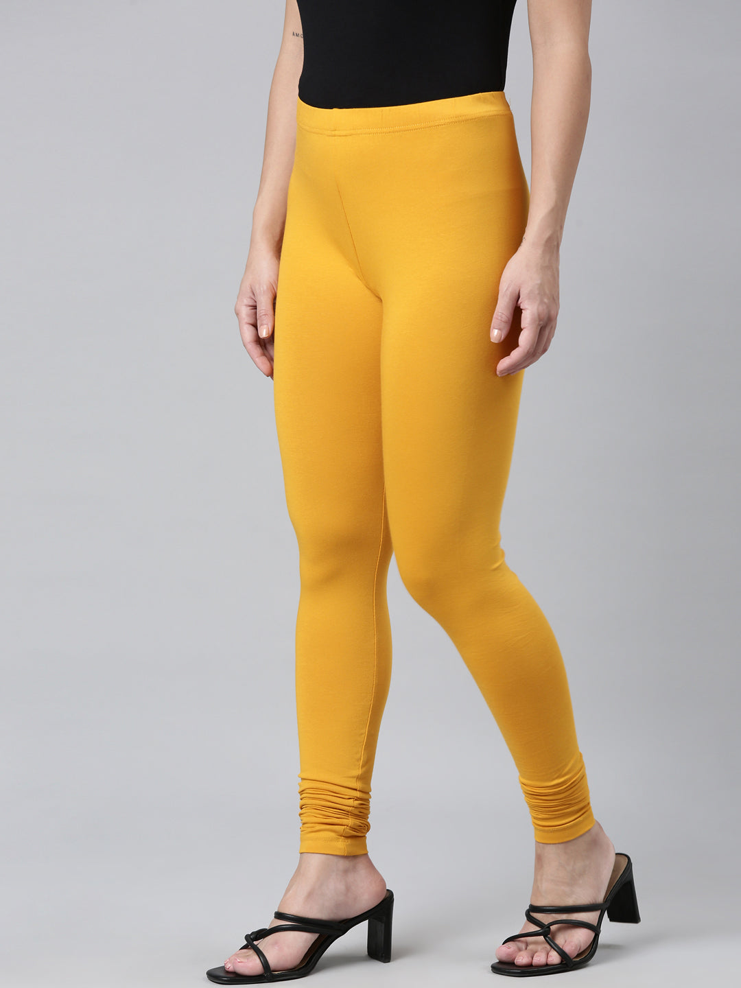 Go chic with a pair of Bright Mustard Solid Churidar Leggings. Made from high quality cotton, it has a elasticised waistband & gathers at the hemline.