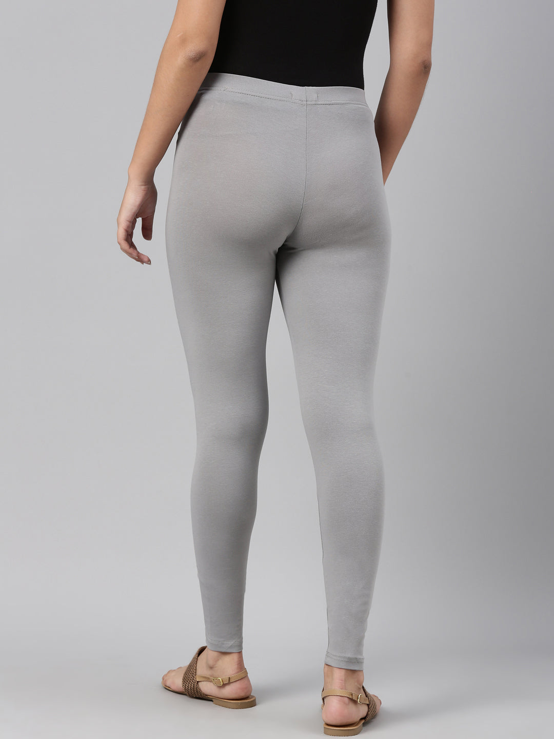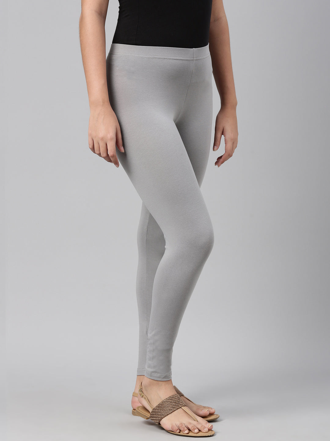 Ebony Grey Cotton Stretch Ankle Length Leggings
