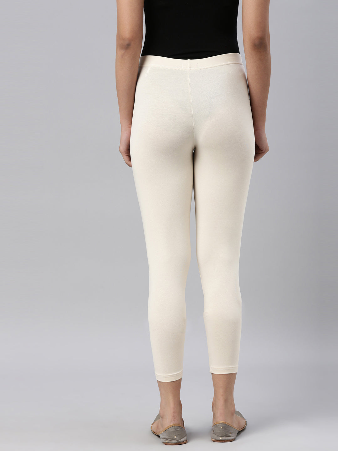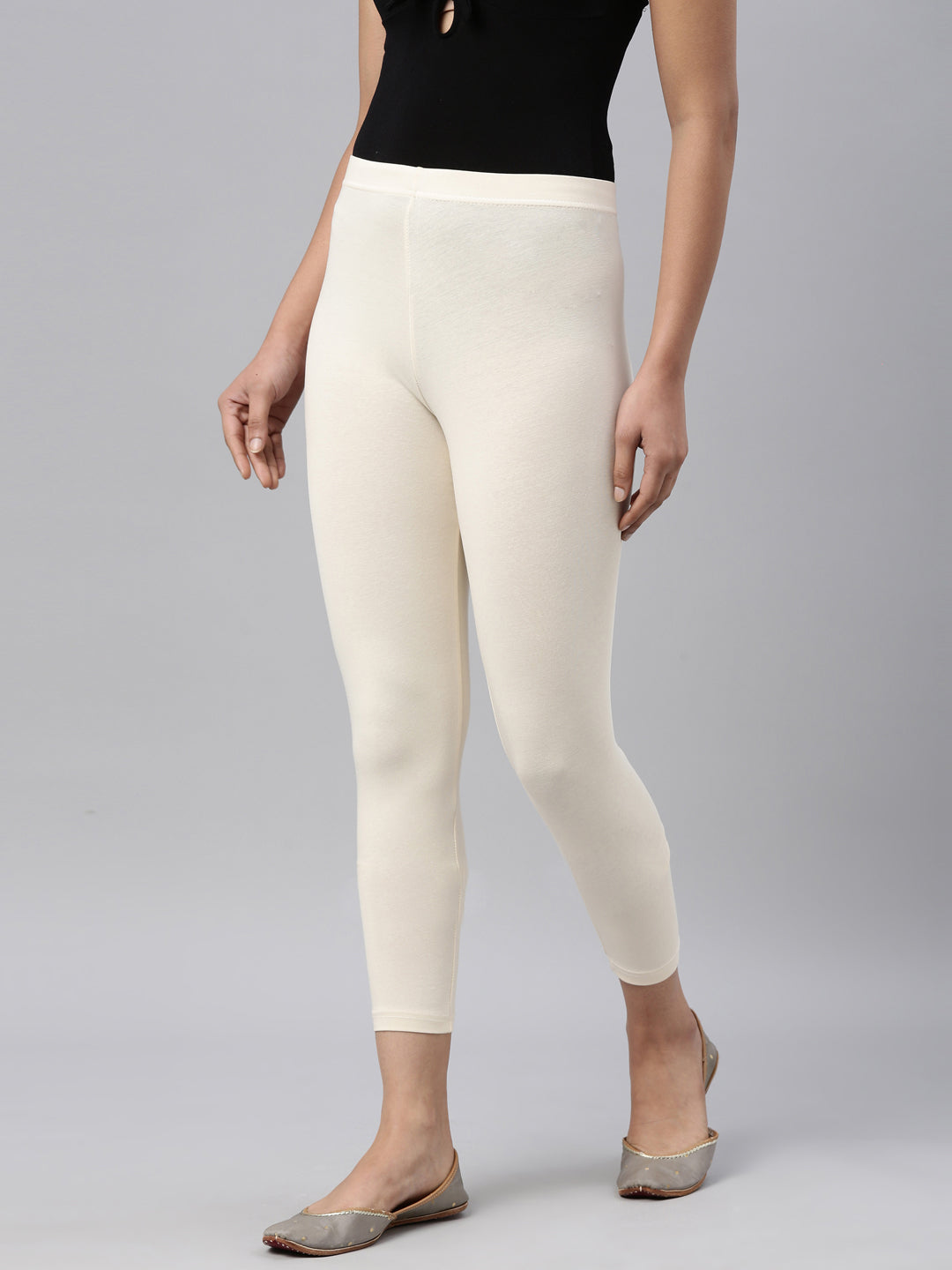 Go the ethnic way with our Solid Ecru Cropped Leggings. Made from Cotton & Elastane, it has a elasticised waistband, slim fit & is of 7/8th length.
